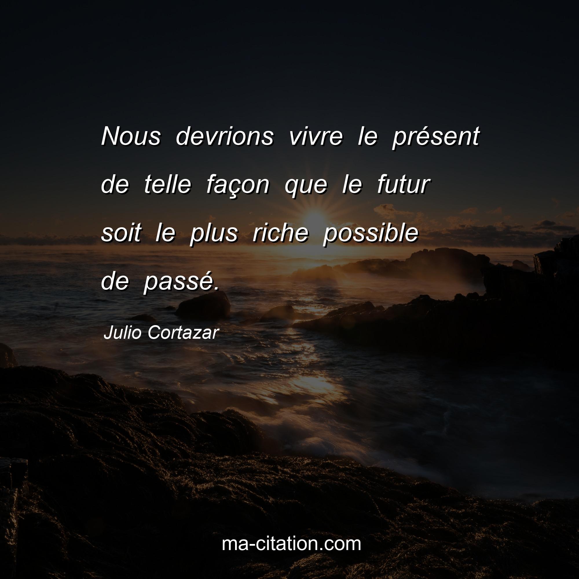 Citation sur la vie de Julio Cortazar :Nous devrions vivre le présent de telle façon que le futur soit le plus riche possible de passé.