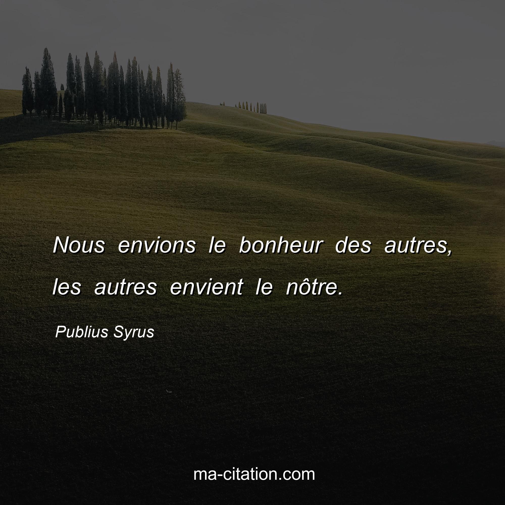 Citation sur la vie de Publius Syrus :Nous envions le bonheur des autres, les autres envient le nôtre.