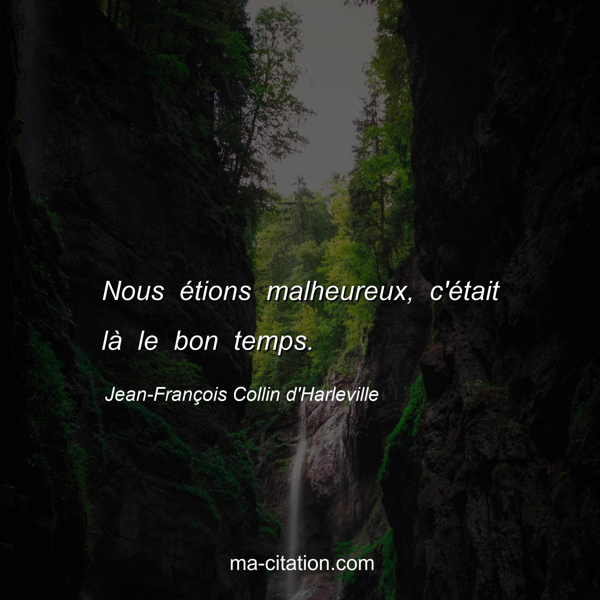 Citation sur la vie de Jean-François Collin d'Harleville :Nous étions malheureux, c'était là le bon temps.