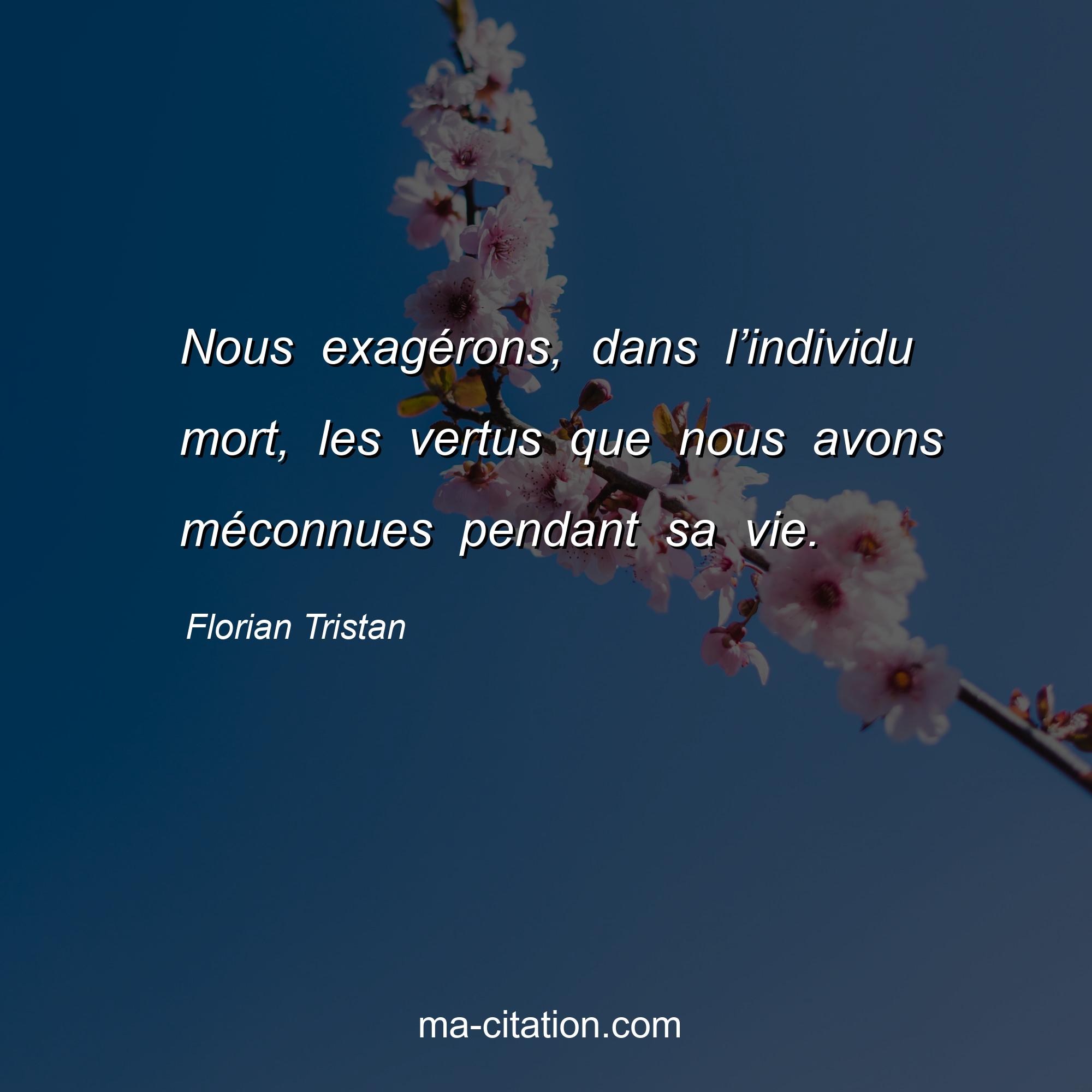 Florian Tristan est l'auteur de la citation sur la vie "Nous exagérons, dans l’individu mort, les vertus que nous avons méconnues pendant sa vie.".