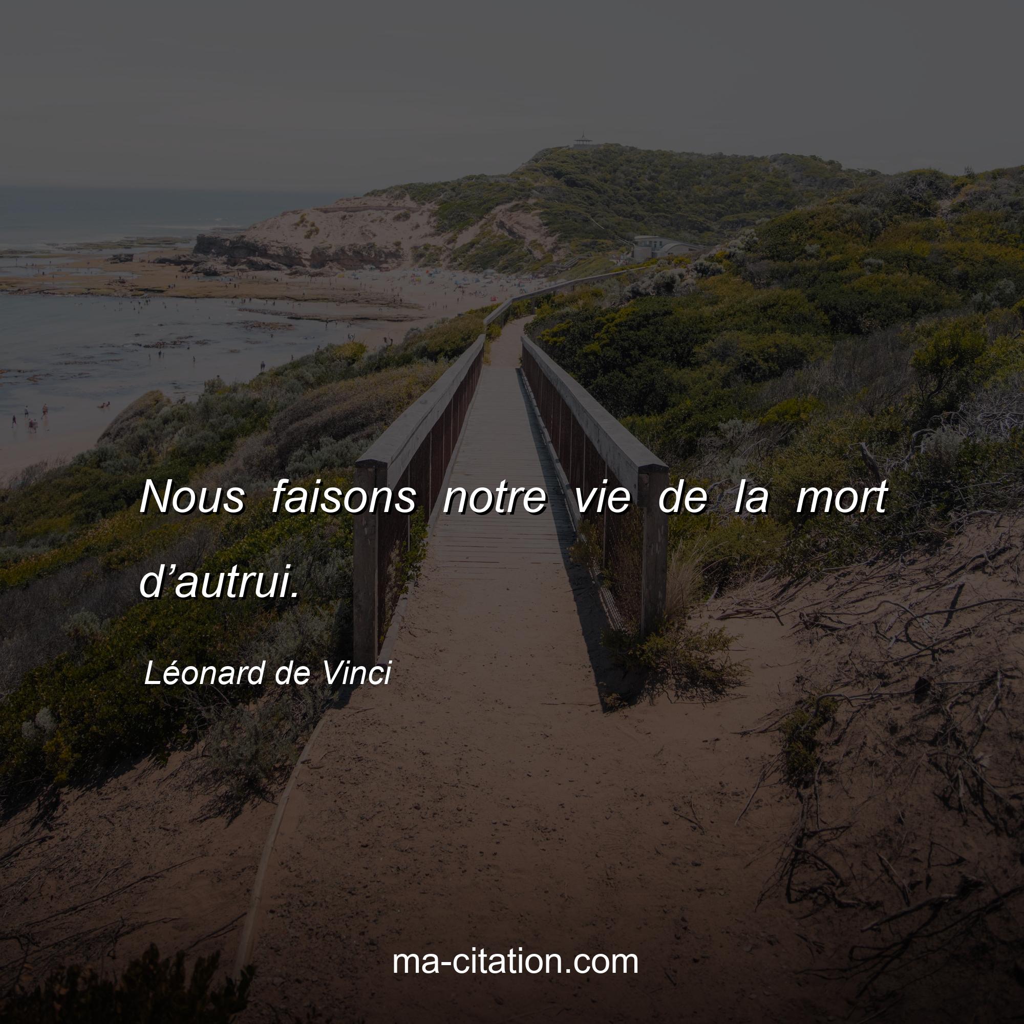 Citation sur la vie de Léonard de Vinci :Nous faisons notre vie de la mort d’autrui.