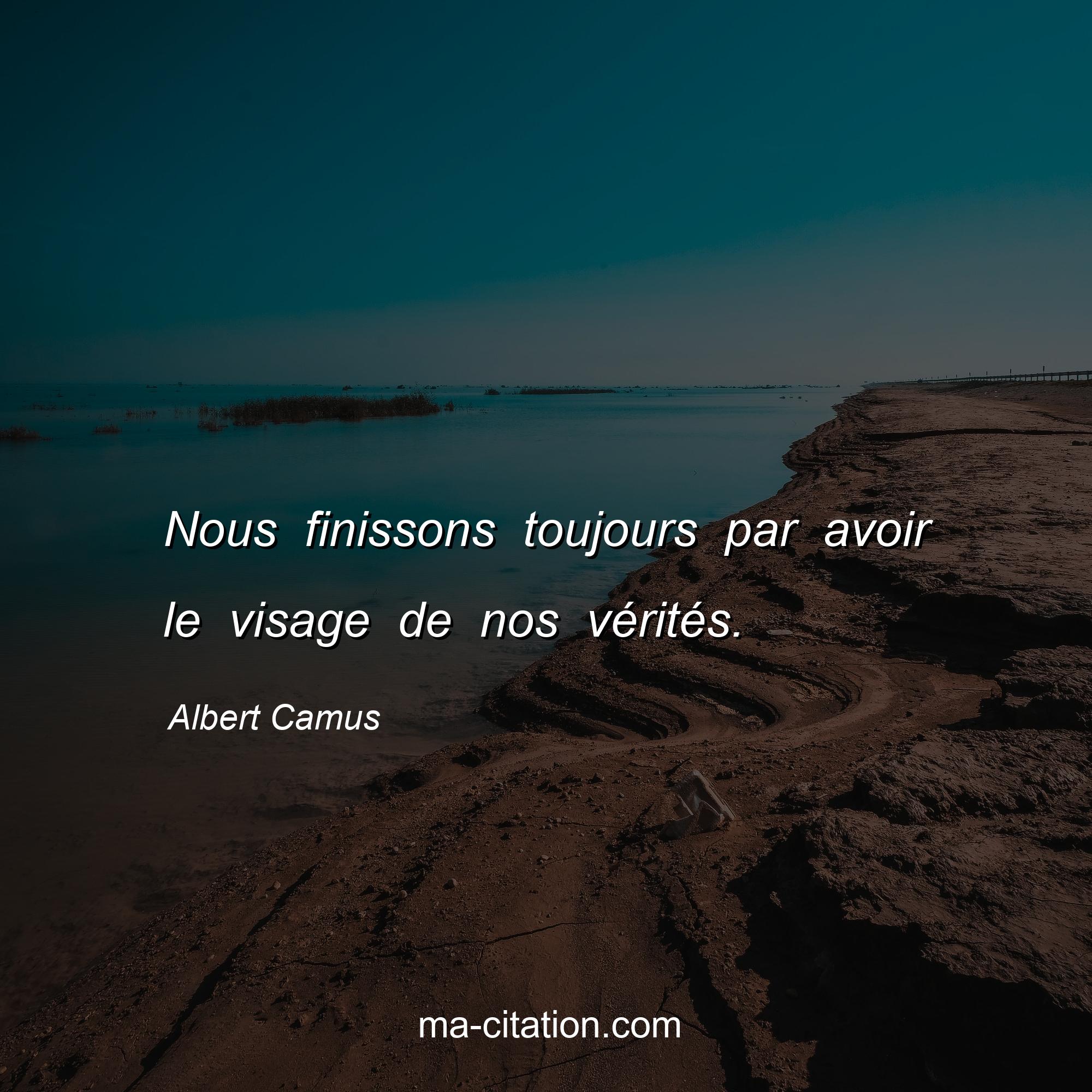 Albert Camus est l'auteur de la citation sur la vie "Nous finissons toujours par avoir le visage de nos vérités.".