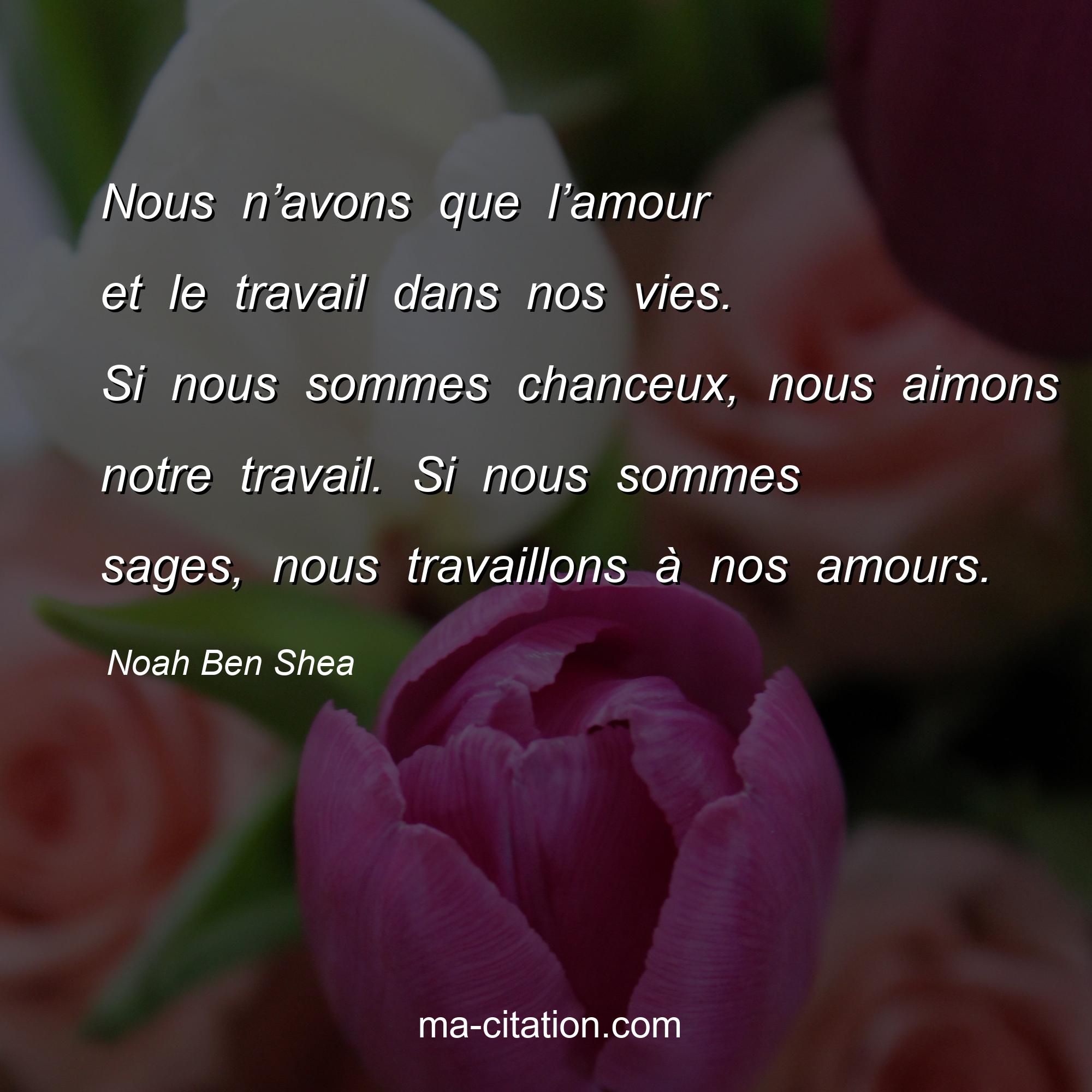 Citation sur la vie de Noah Ben Shea :Nous n’avons que l’amour et le travail dans nos vies. Si nous sommes chanceux, nous aimons notre travail. Si nous sommes sages, nous travaillons à nos amours.