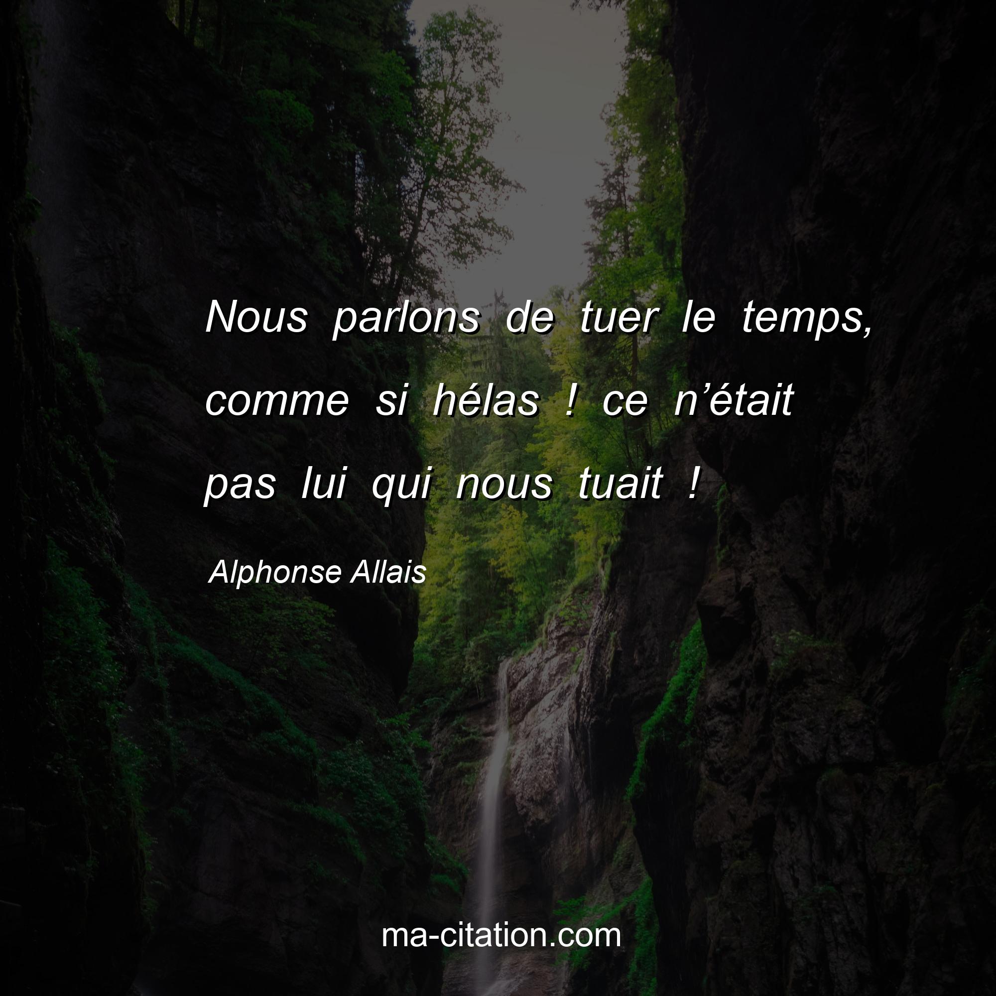 Citation sur la vie d'Alphonse Allais :Nous parlons de tuer le temps, comme si hélas ! ce n’était pas lui qui nous tuait !