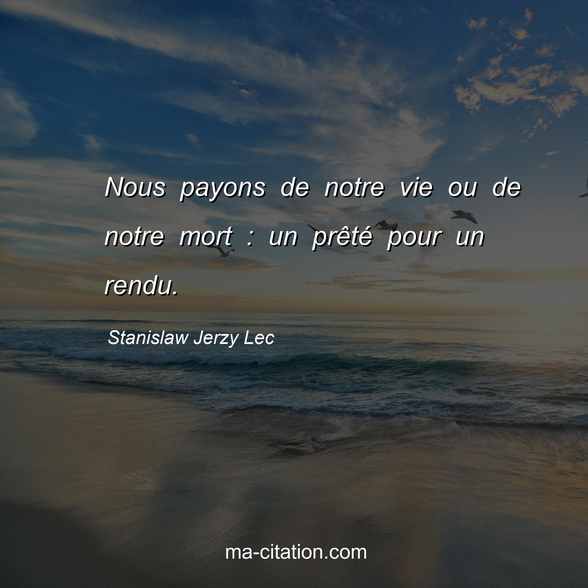 Citation sur la vie de Stanislaw Jerzy Lec :Nous payons de notre vie ou de notre mort : un prêté pour un rendu.