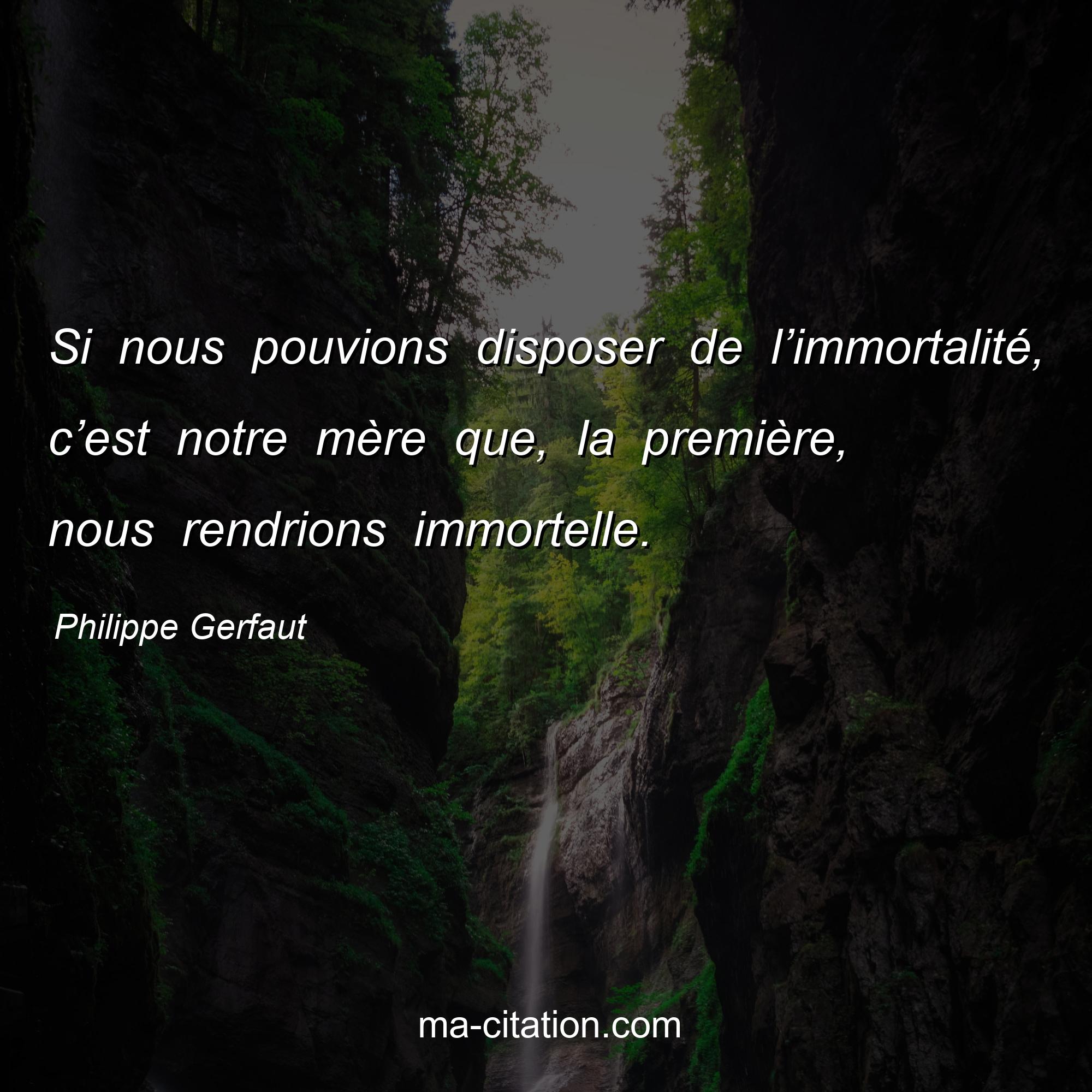Philippe Gerfaut est l'auteur de la citation sur la vie "Si nous pouvions disposer de l’immortalité, c’est notre mère que, la première, nous rendrions immortelle.".