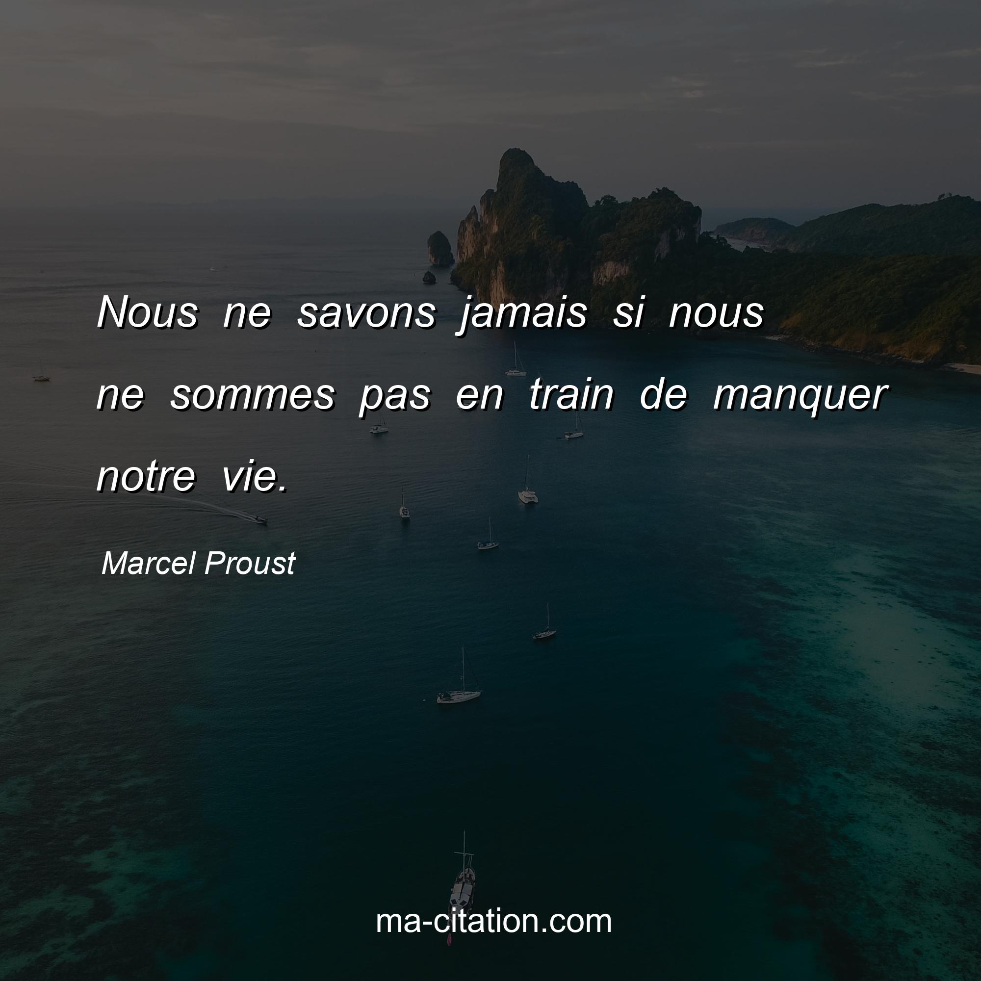 Citation sur la vie de Marcel Proust :Nous ne savons jamais si nous ne sommes pas en train de manquer notre vie.