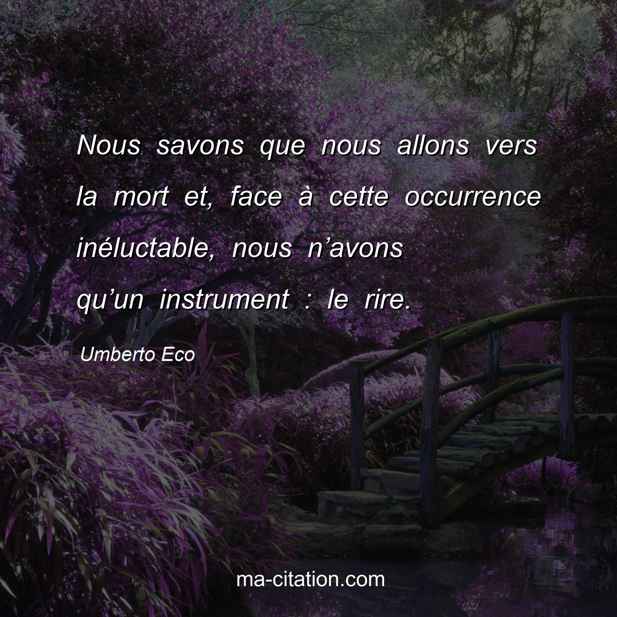 Citation sur la vie d'Umberto Eco :Nous savons que nous allons vers la mort et, face à cette occurrence inéluctable, nous n’avons qu’un instrument : le rire.