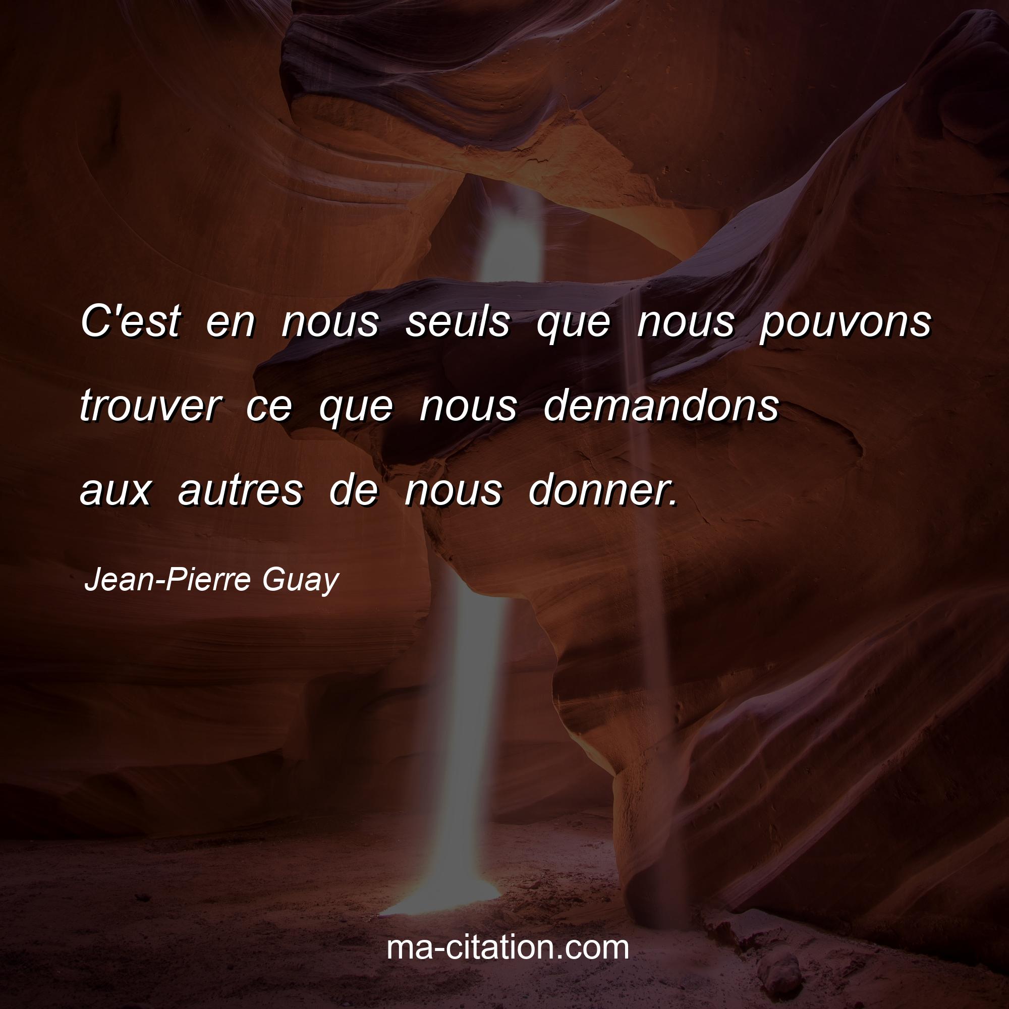 Jean-Pierre Guay est l'auteur de la citation sur la vie "C'est en nous seuls que nous pouvons trouver ce que nous demandons aux autres de nous donner.".