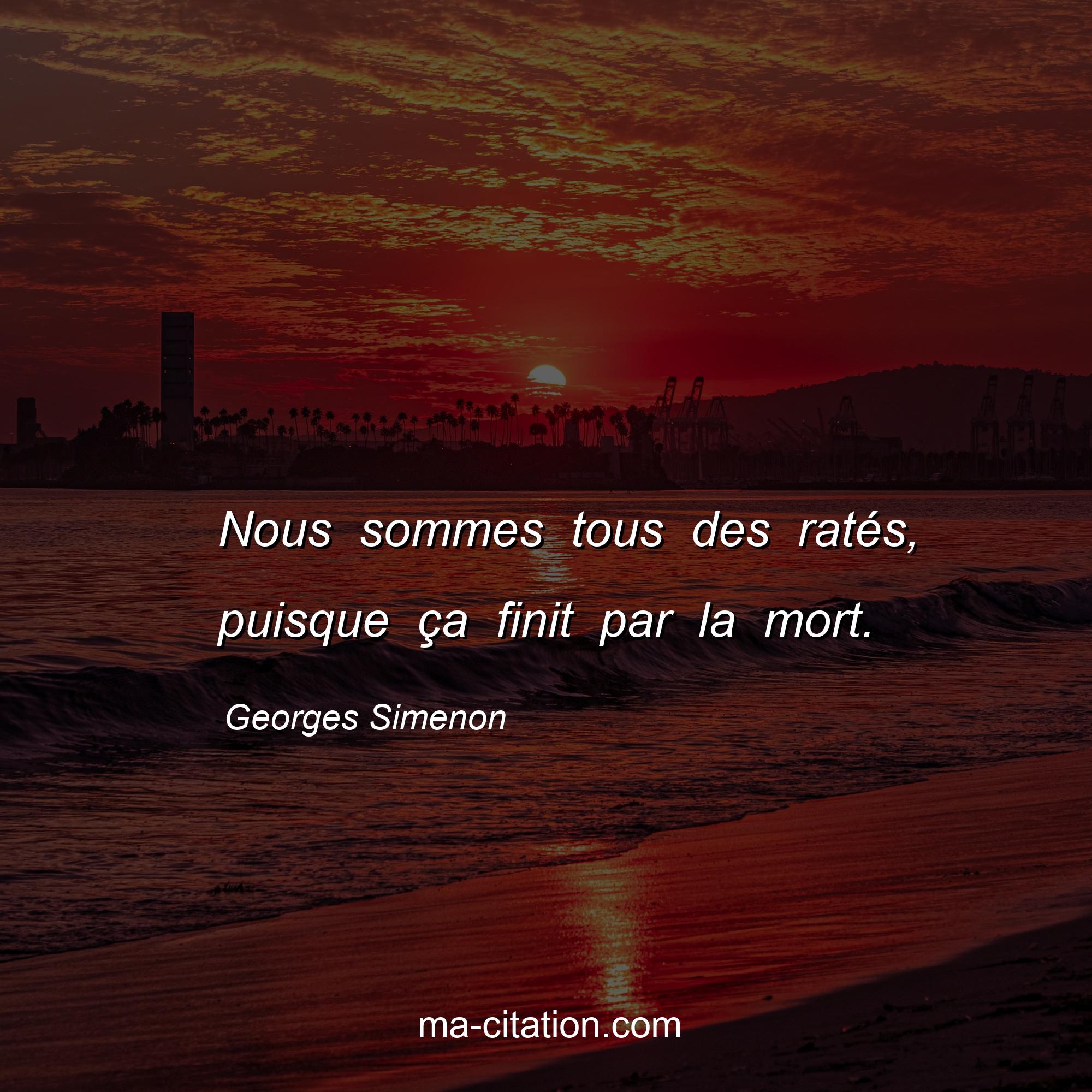 Citation sur la vie de Georges Simenon :Nous sommes tous des ratés, puisque ça finit par la mort.