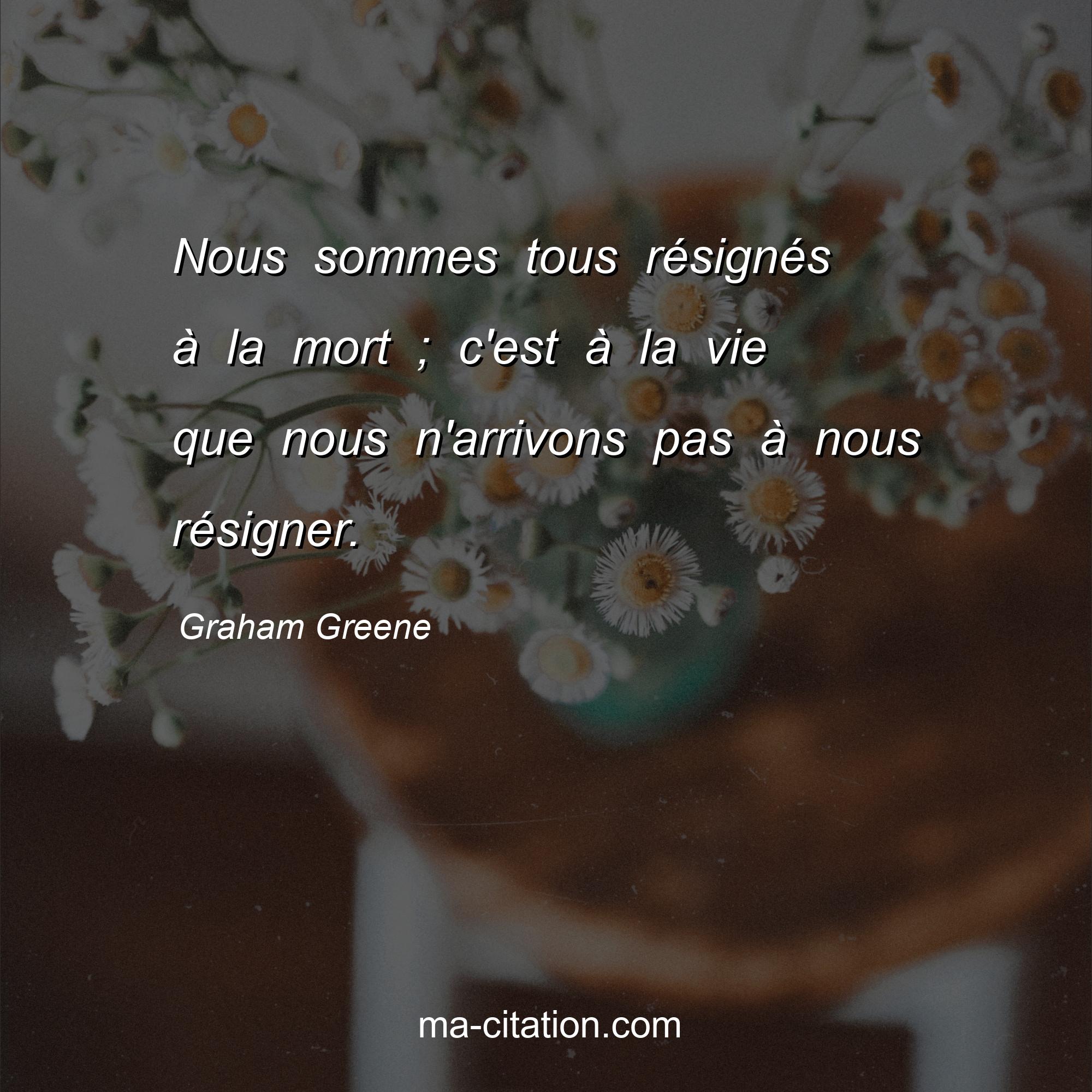 Citation sur la vie de Graham Greene :Nous sommes tous résignés à la mort ; c'est à la vie que nous n'arrivons pas à nous résigner.