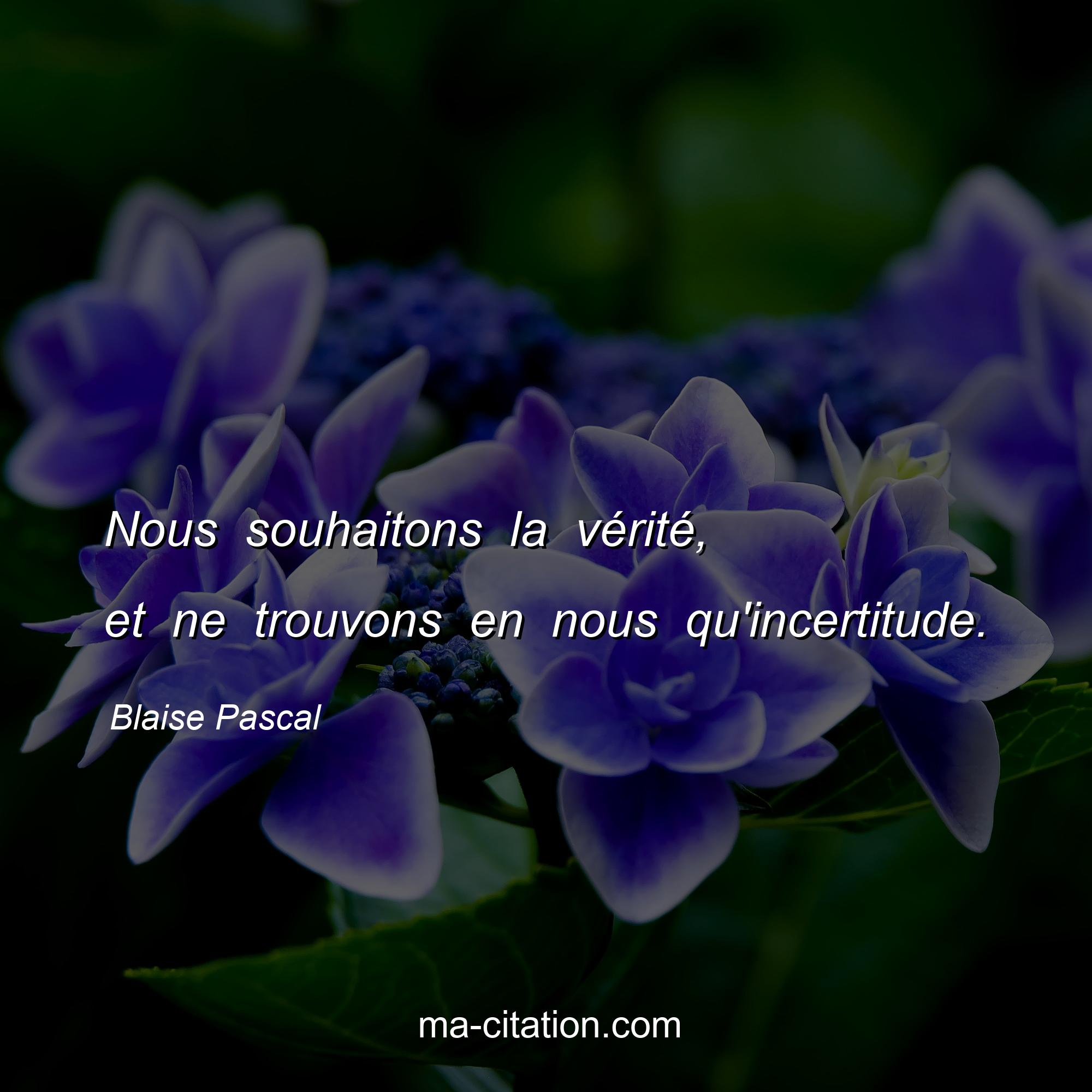 Citation sur la vie de Blaise Pascal :Nous souhaitons la vérité, et ne trouvons en nous qu'incertitude.