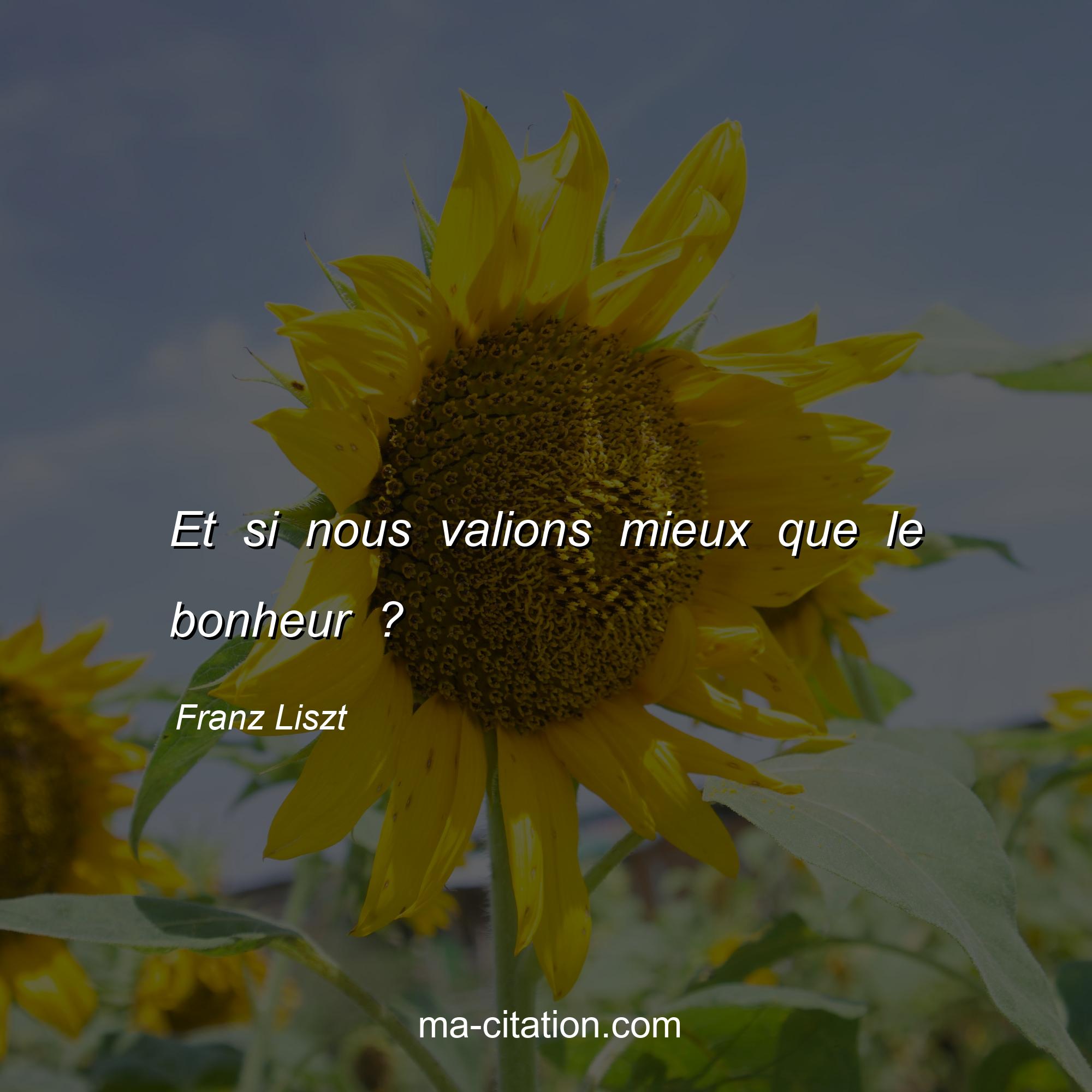 Franz Liszt est l'auteur de la citation sur la vie "Et si nous valions mieux que le bonheur ?".