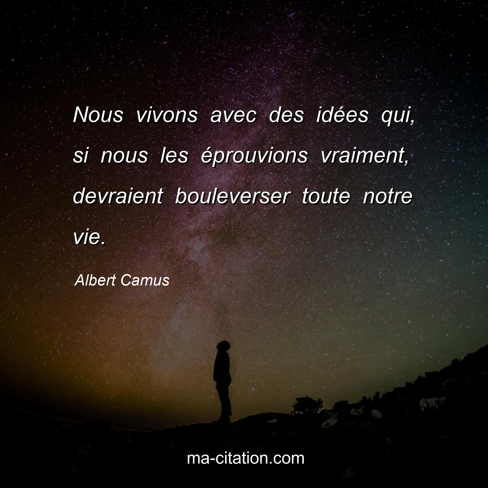 Albert Camus est l'auteur de la citation sur la vie "Nous vivons avec des idées qui, si nous les éprouvions vraiment, devraient bouleverser toute notre vie.".