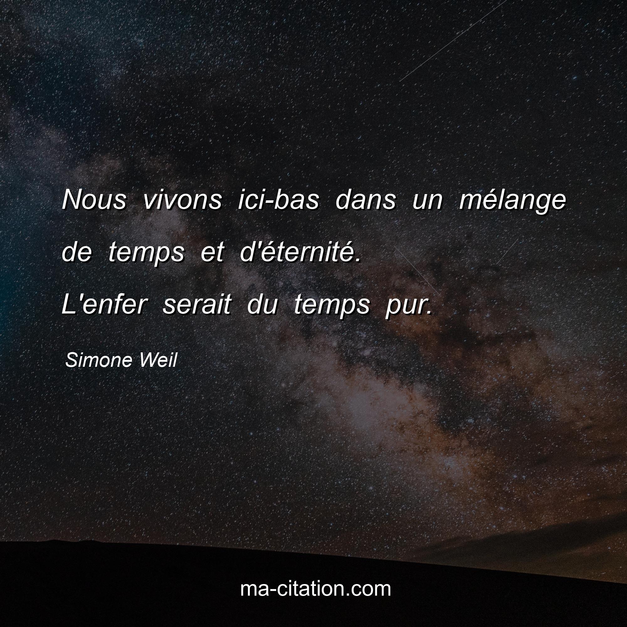 Citation sur la vie de Simone Weil :Nous vivons ici-bas dans un mélange de temps et d'éternité. L'enfer serait du temps pur.