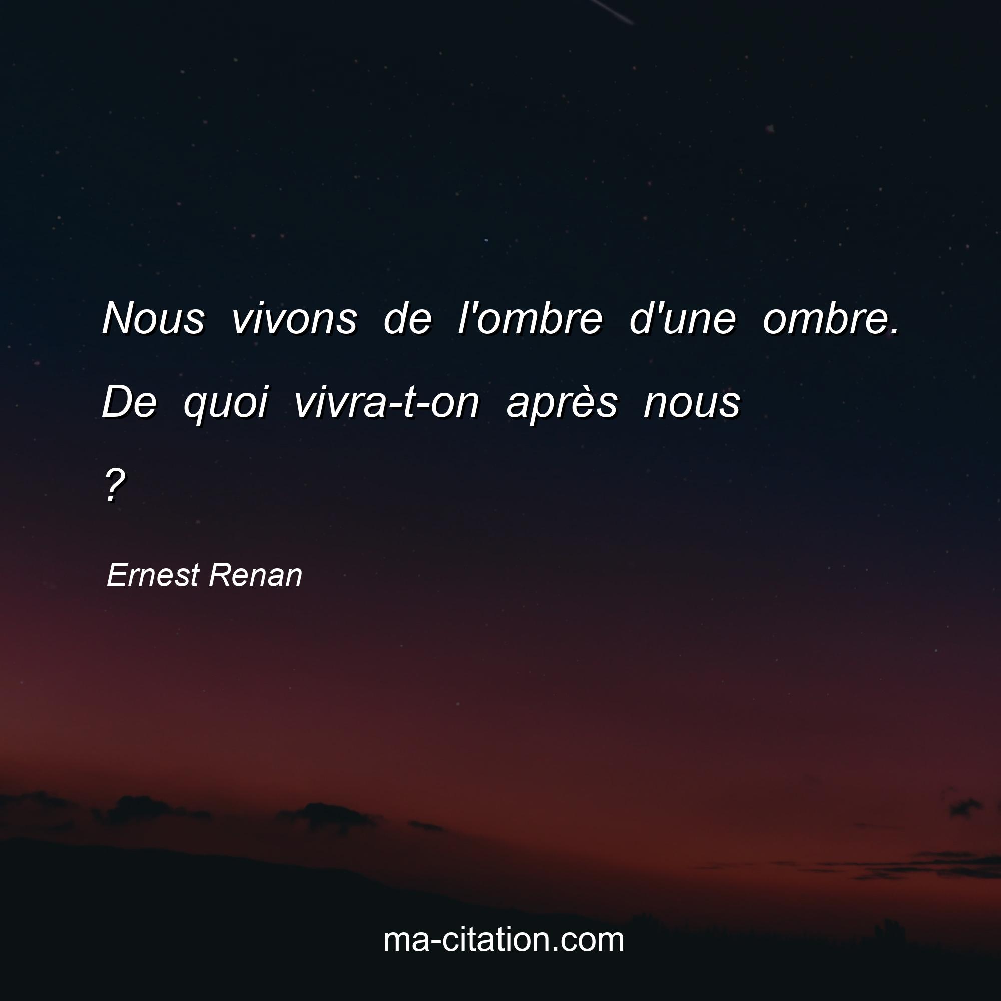 Citation sur la vie d'Ernest Renan :Nous vivons de l'ombre d'une ombre. De quoi vivra-t-on après nous ?