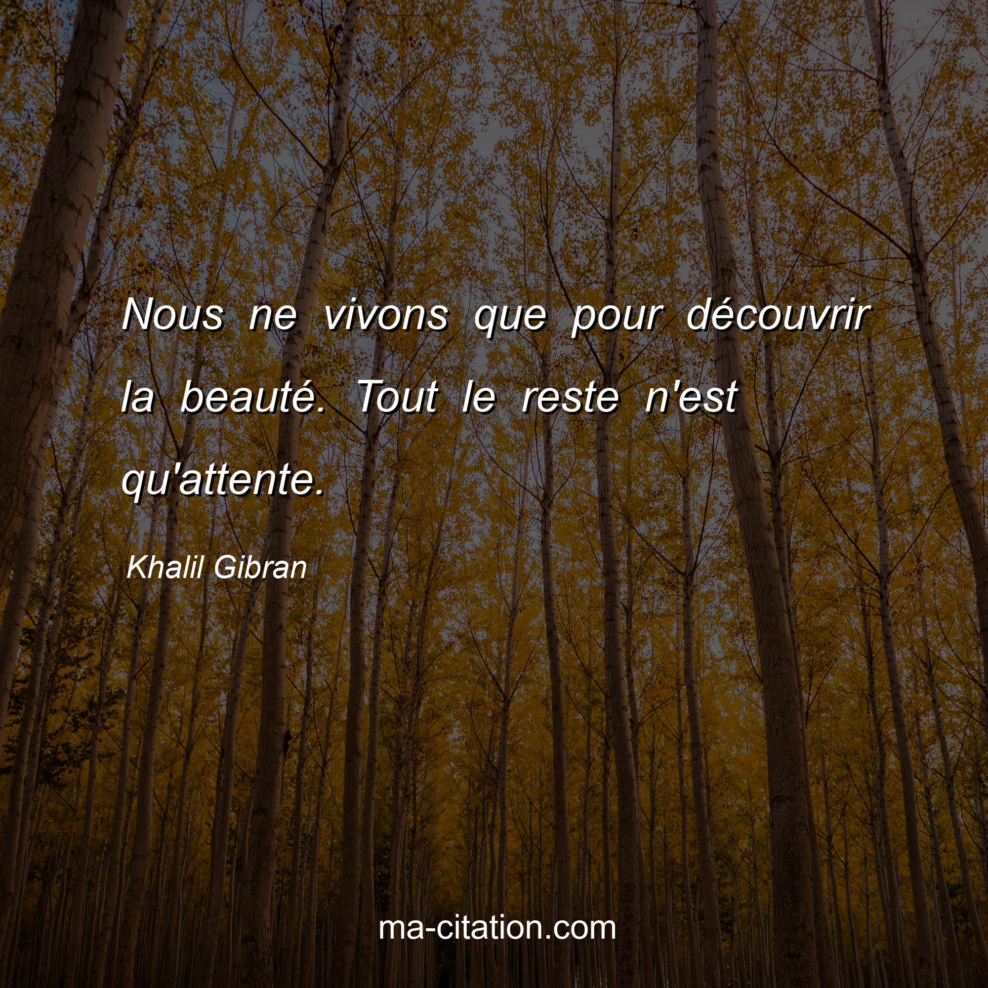 Citation sur la vie de Khalil Gibran :Nous ne vivons que pour découvrir la beauté. Tout le reste n'est qu'attente.