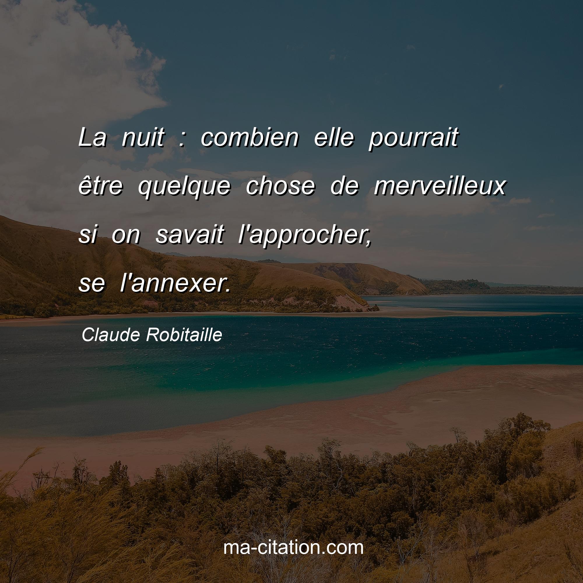 Claude Robitaille est l'auteur de la citation sur la vie "La nuit : combien elle pourrait être quelque chose de merveilleux si on savait l'approcher, se l'annexer.".