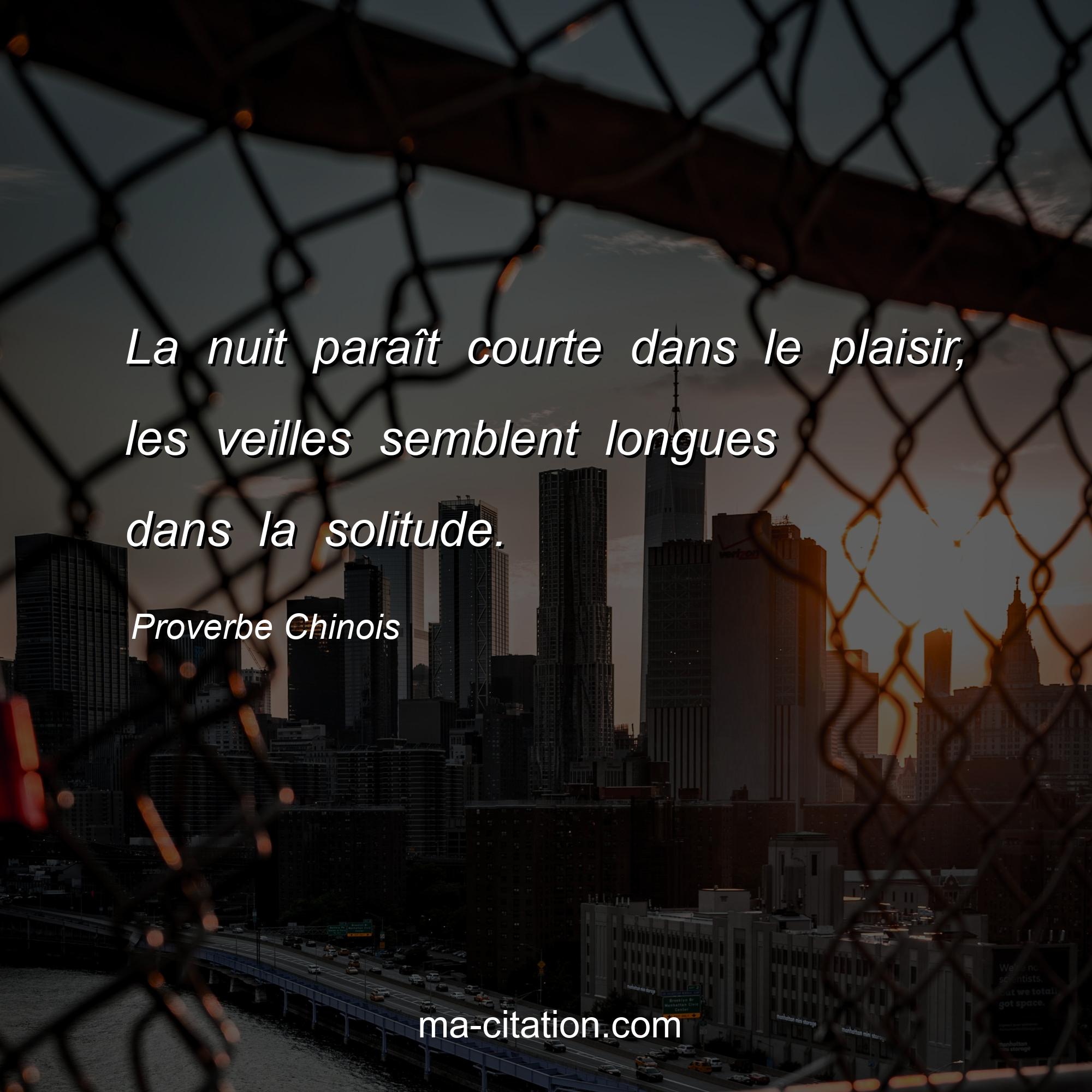 Proverbe Chinois sur la vie :La nuit paraît courte dans le plaisir, les veilles semblent longues dans la solitude.