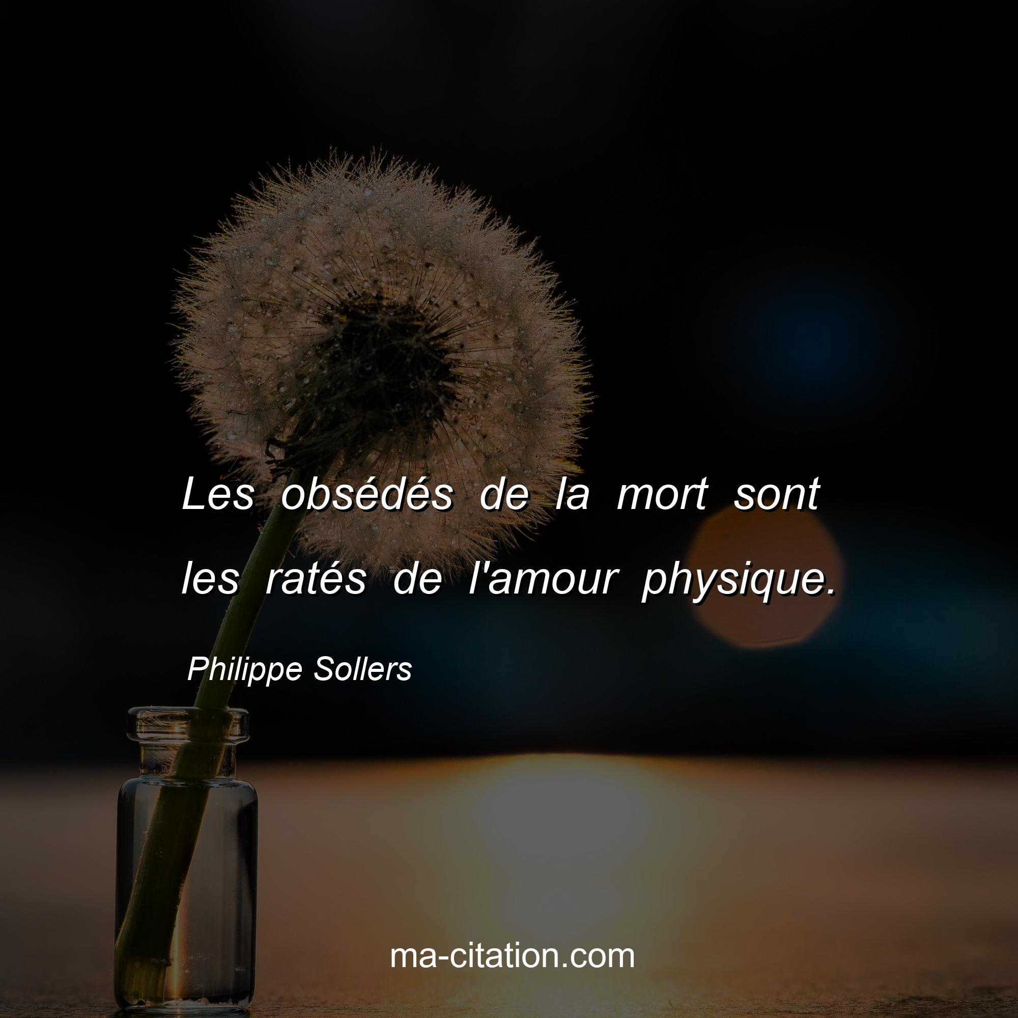Citation sur la vie de Philippe Sollers :Les obsédés de la mort sont les ratés de l'amour physique.