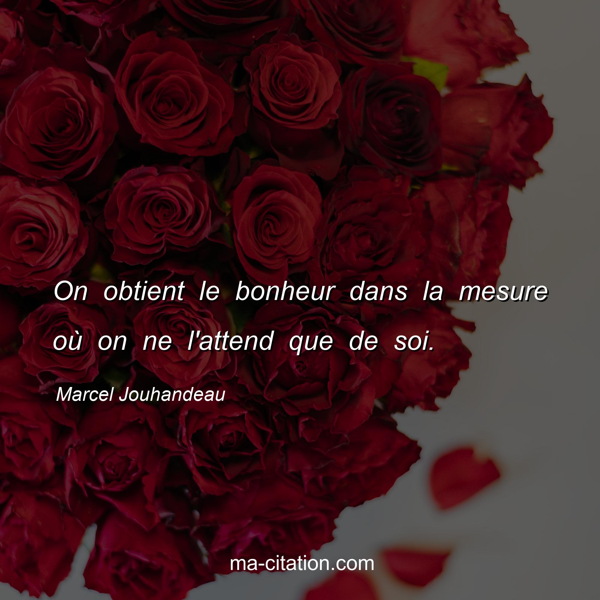 On obtient le bonheur dans la mesure où on ne l'attend que de soi.