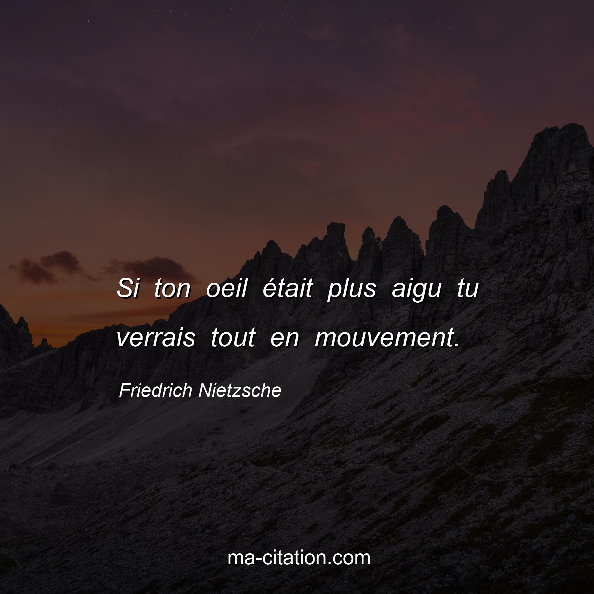 Citation sur la vie de Friedrich Nietzsche :Si ton oeil était plus aigu tu verrais tout en mouvement.