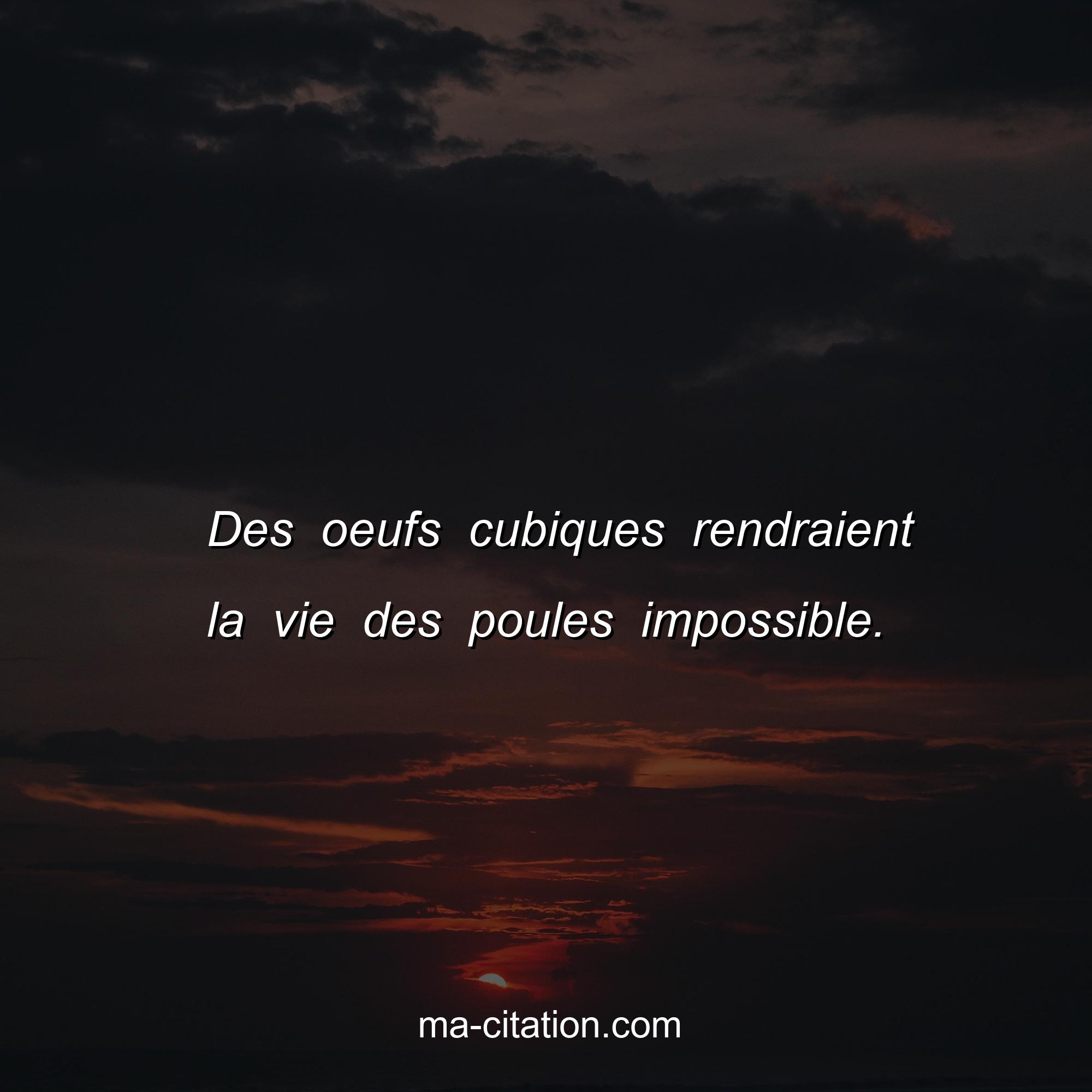 Citation sur la vie :Des oeufs cubiques rendraient la vie des poules impossible.