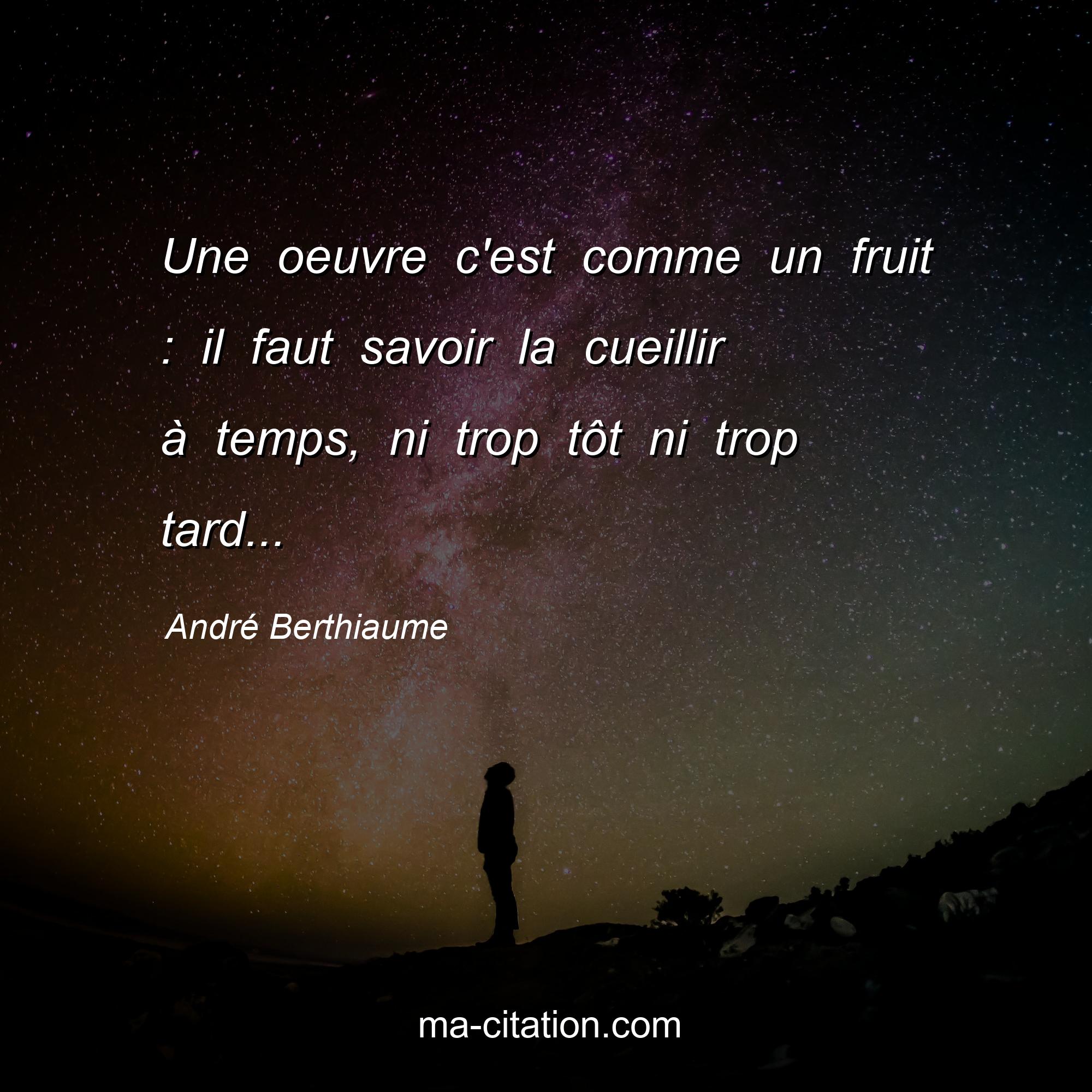 Citation sur la vie d'André Berthiaume :Une oeuvre c'est comme un fruit : il faut savoir la cueillir à temps, ni trop tôt ni trop tard...