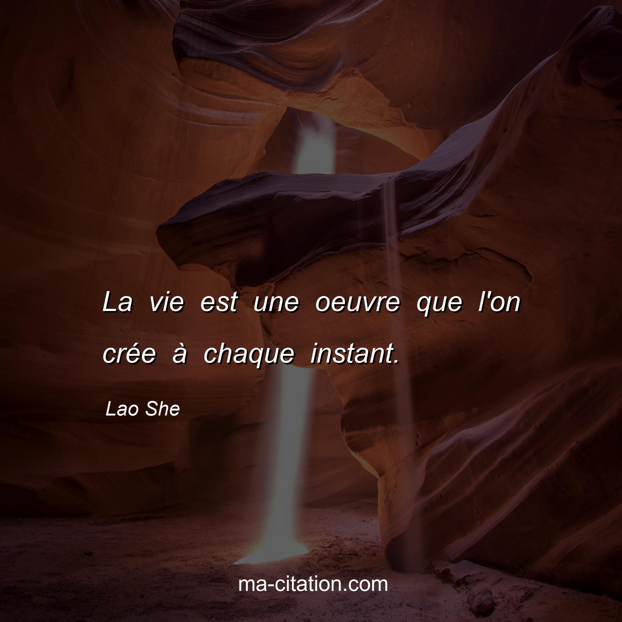 Lao She est l'auteur de la citation sur la vie "La vie est une oeuvre que l'on crée à chaque instant.".