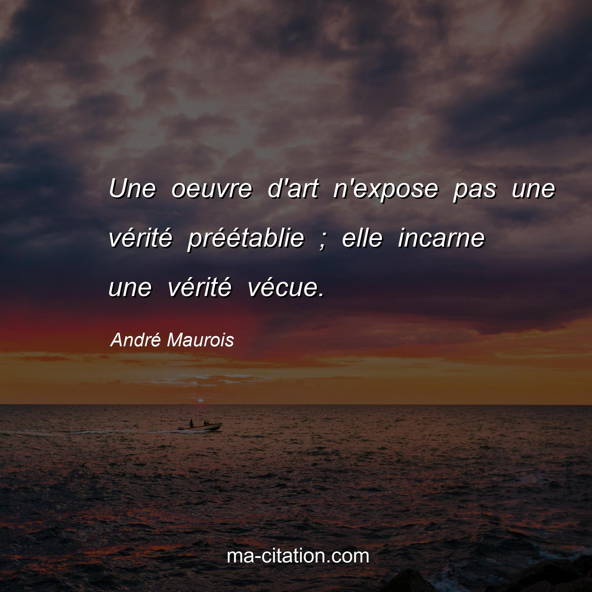 André Maurois est l'auteur de la citation sur la vie "Une oeuvre d'art n'expose pas une vérité préétablie ; elle incarne une vérité vécue.".