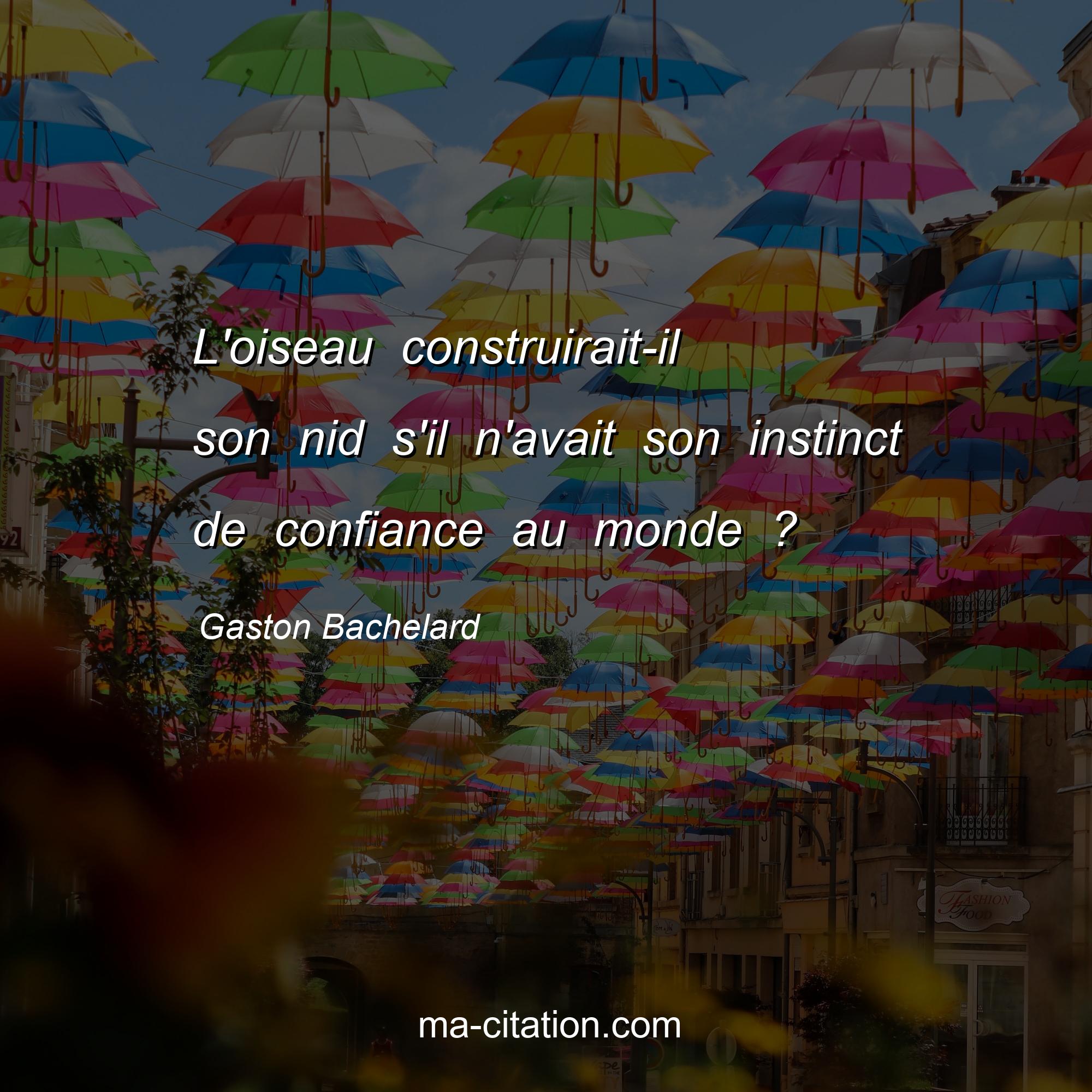 Citation sur la vie de Gaston Bachelard :L'oiseau construirait-il son nid s'il n'avait son instinct de confiance au monde ?