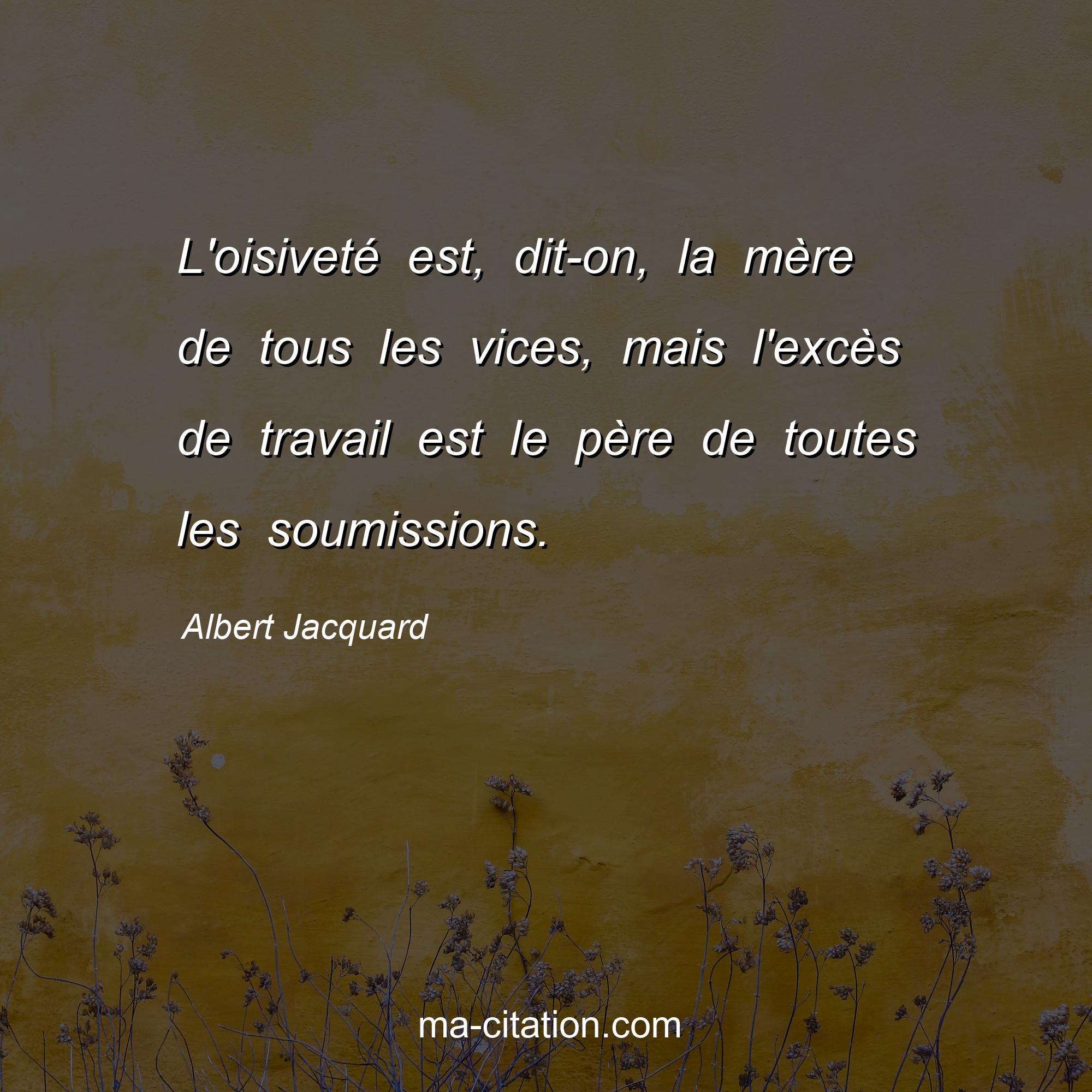 Albert Jacquard est l'auteur de la citation sur la vie "L'oisiveté est, dit-on, la mère de tous les vices, mais l'excès de travail est le père de toutes les soumissions.".