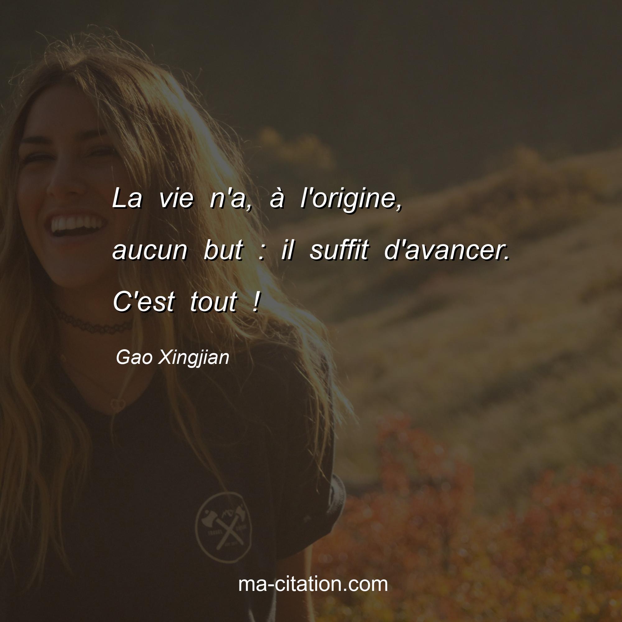 Citation sur la vie de Gao Xingjian :La vie n'a, Ã l'origine, aucun but : il suffit d'avancer. C'est tout !