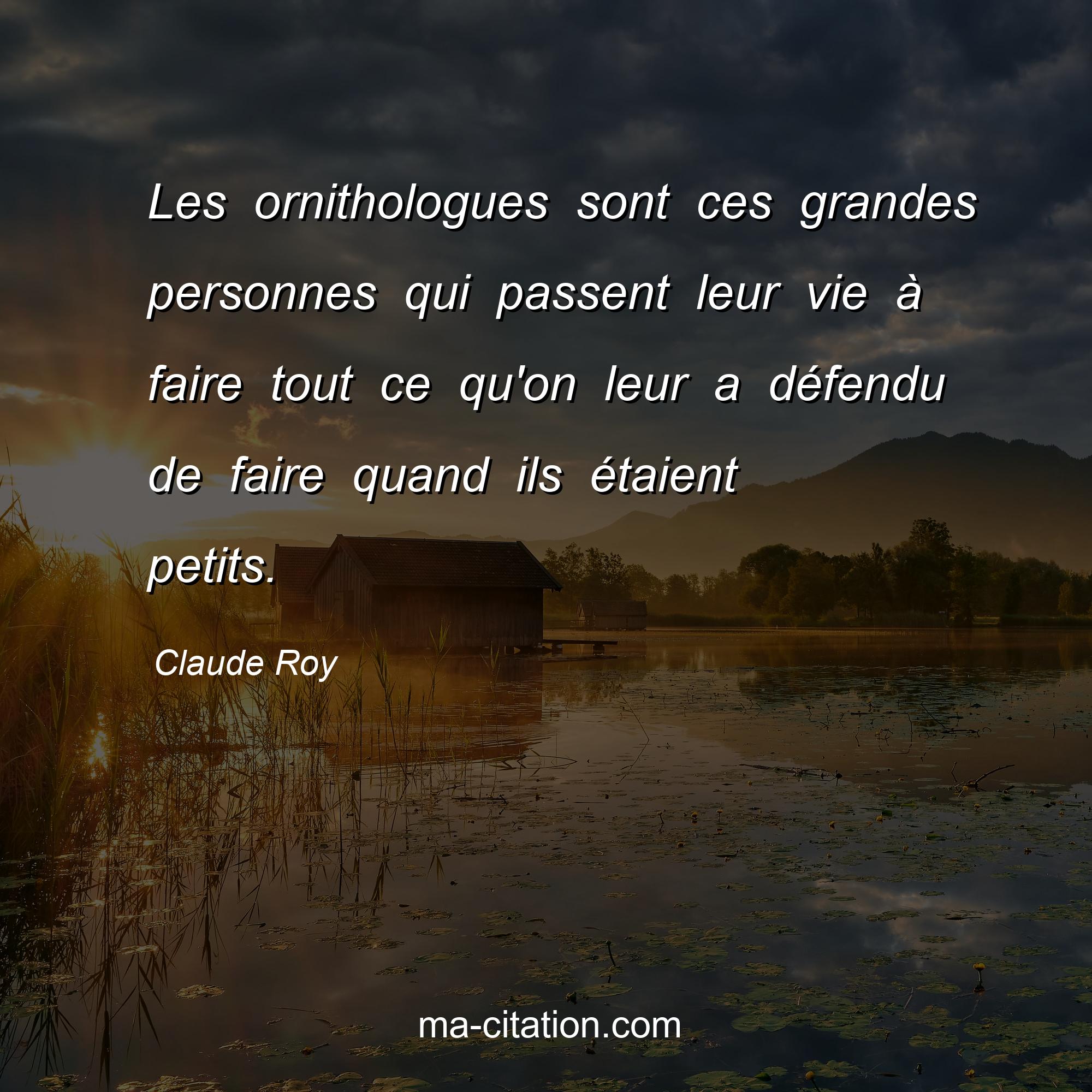 Citation sur la vie de Claude Roy :Les ornithologues sont ces grandes personnes qui passent leur vie à faire tout ce qu'on leur a défendu de faire quand ils étaient petits.