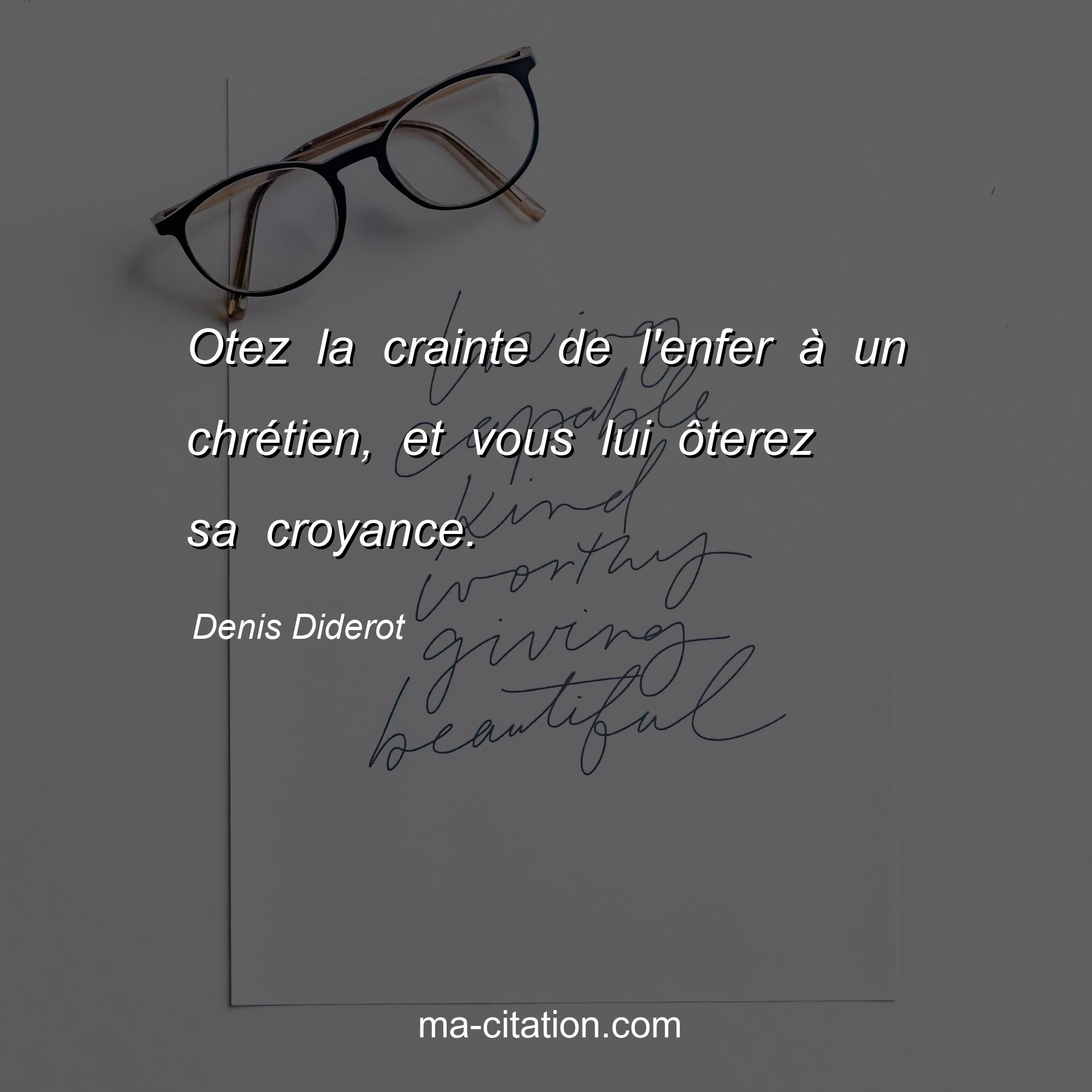 Citation sur la vie de Denis Diderot :Otez la crainte de l'enfer à un chrétien, et vous lui ôterez sa croyance.