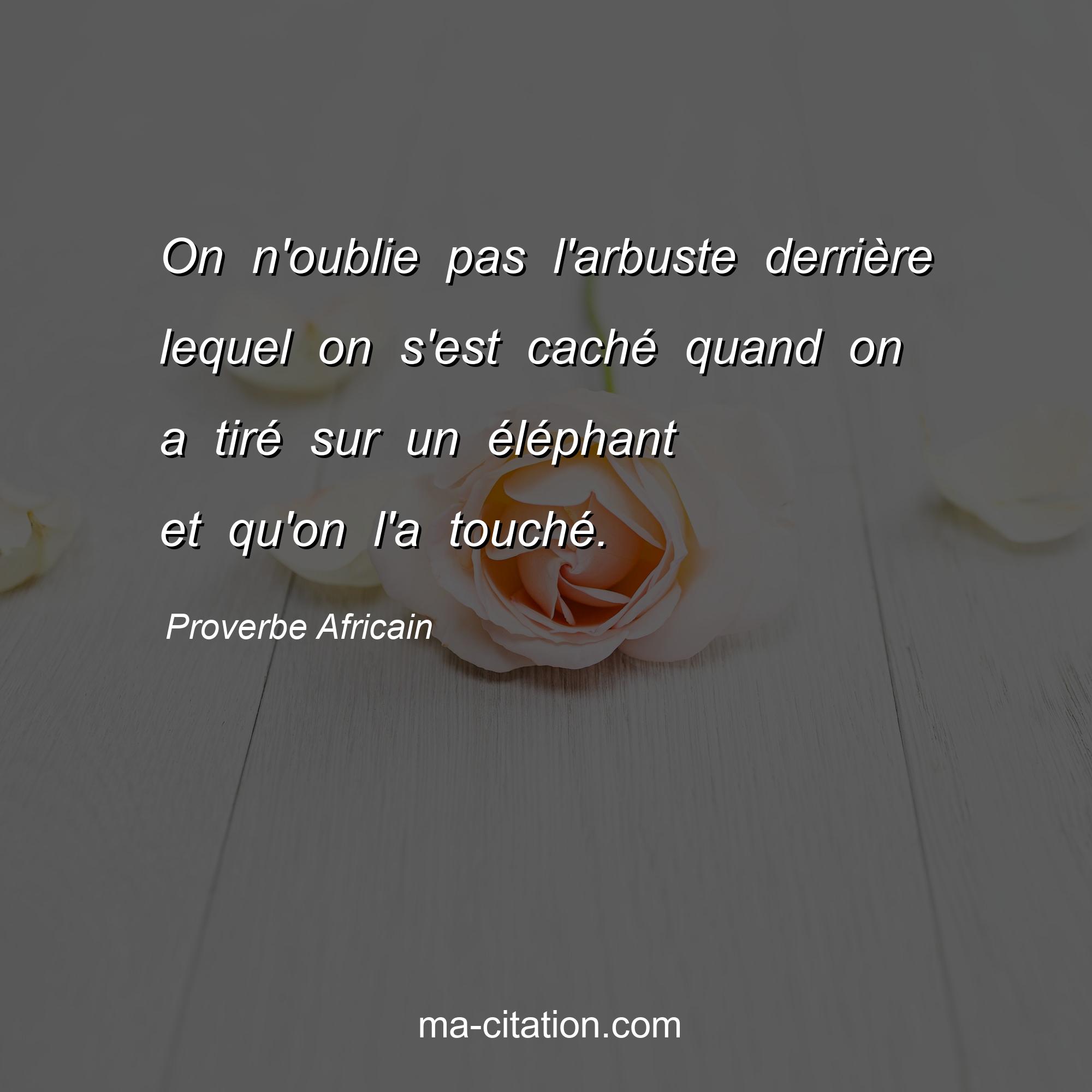 Proverbe Africain sur la vie :On n'oublie pas l'arbuste derrière lequel on s'est caché quand on a tiré sur un éléphant et qu'on l'a touché.