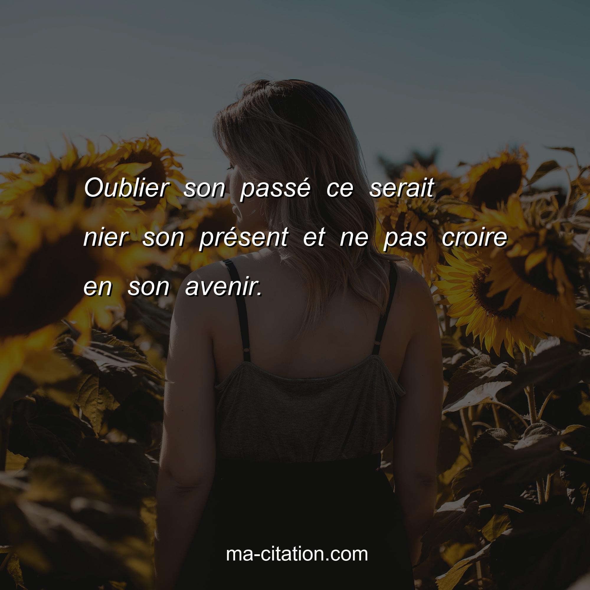 Citation sur la vie :Oublier son passé ce serait nier son présent et ne pas croire en son avenir.