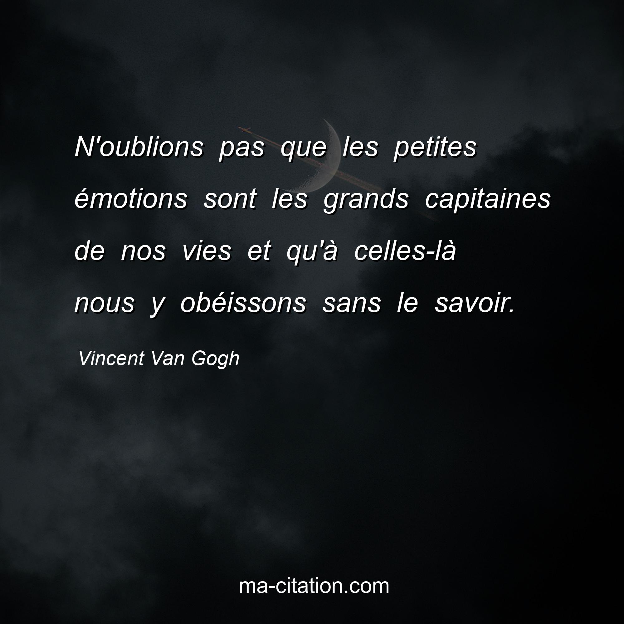 Citation sur la vie de Vincent Van Gogh :N'oublions pas que les petites émotions sont les grands capitaines de nos vies et qu'à celles-là nous y obéissons sans le savoir.