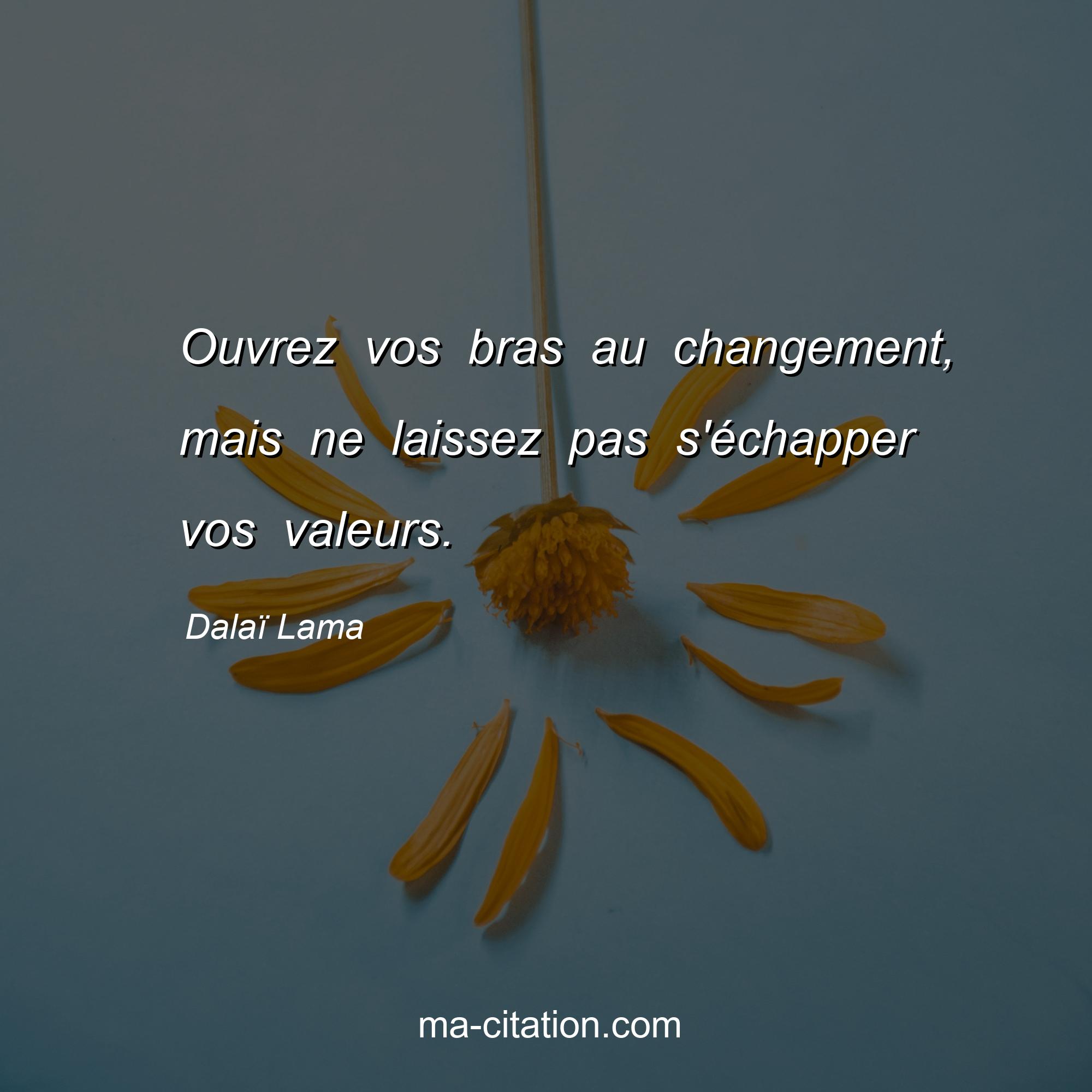 Citation sur la vie de Dalaï Lama :Ouvrez vos bras au changement, mais ne laissez pas s'échapper vos valeurs.