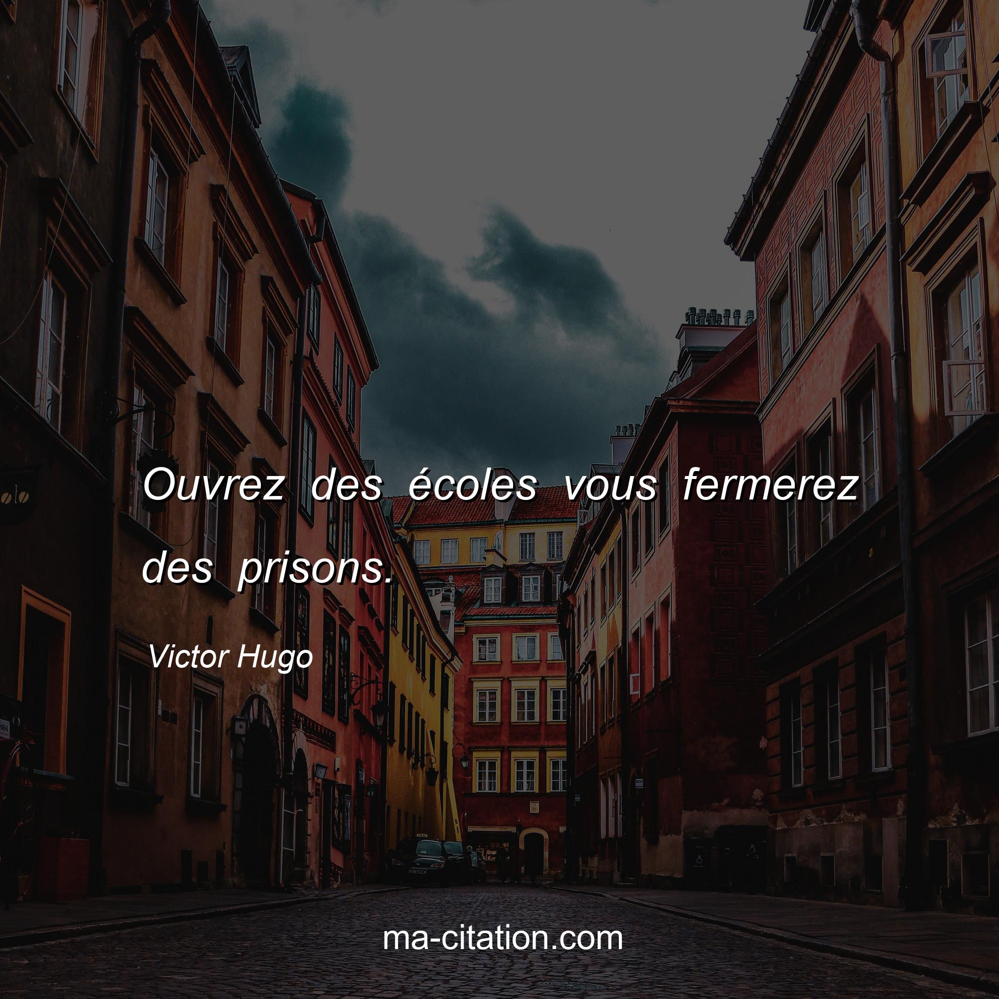 Victor Hugo est l'auteur de la citation sur la vie "Ouvrez des écoles vous fermerez des prisons.".