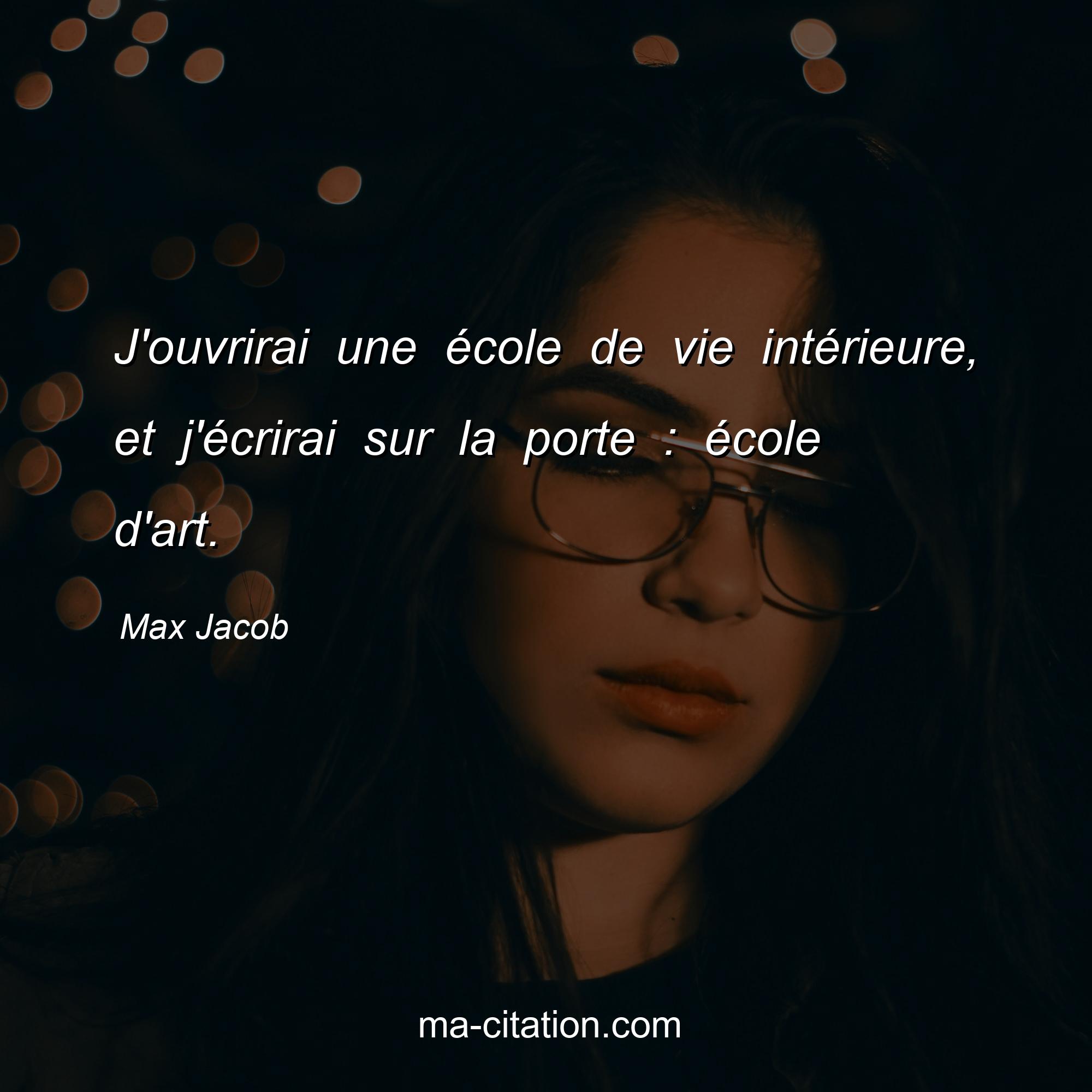 Max Jacob est l'auteur de la citation sur la vie "J'ouvrirai une école de vie intérieure, et j'écrirai sur la porte : école d'art.".