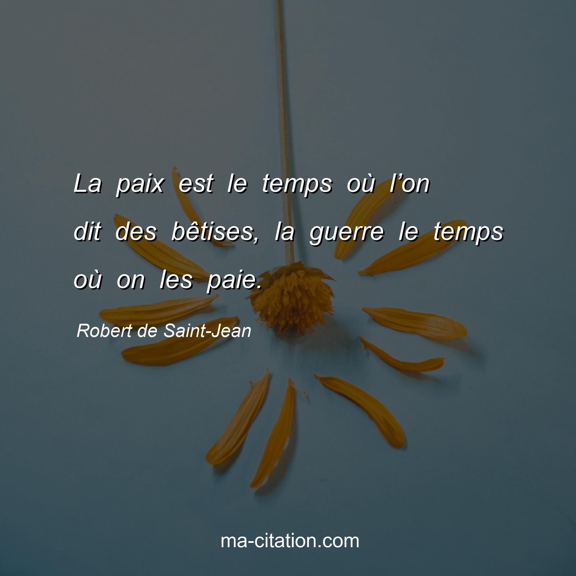 Citation sur la vie de Robert de Saint-Jean :La paix est le temps où l’on dit des bêtises, la guerre le temps où on les paie.