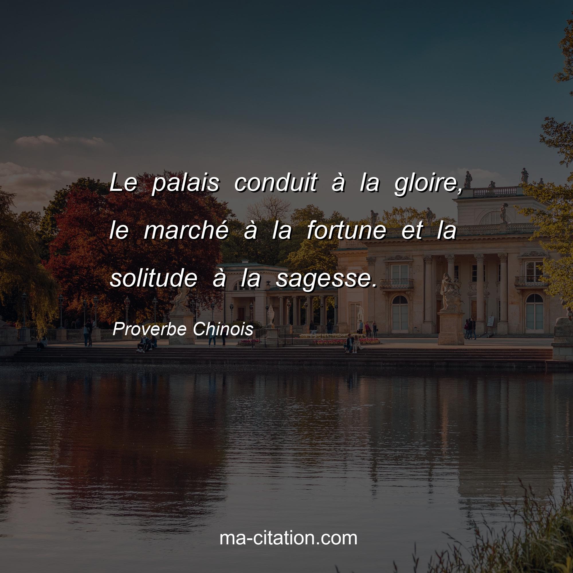 Proverbe Chinois sur la vie :Le palais conduit à la gloire, le marché à la fortune et la solitude à la sagesse.