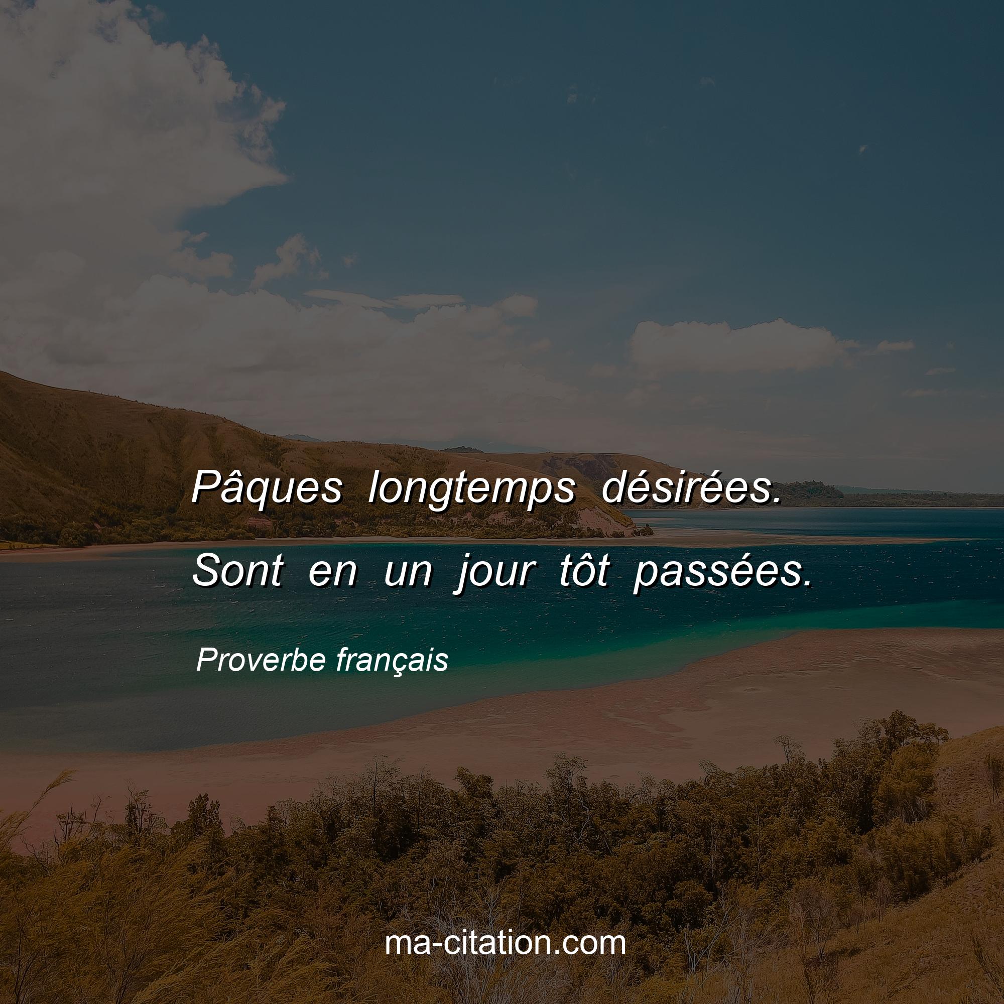 Proverbe français sur la vie :Pâques longtemps désirées. Sont en un jour tôt passées.