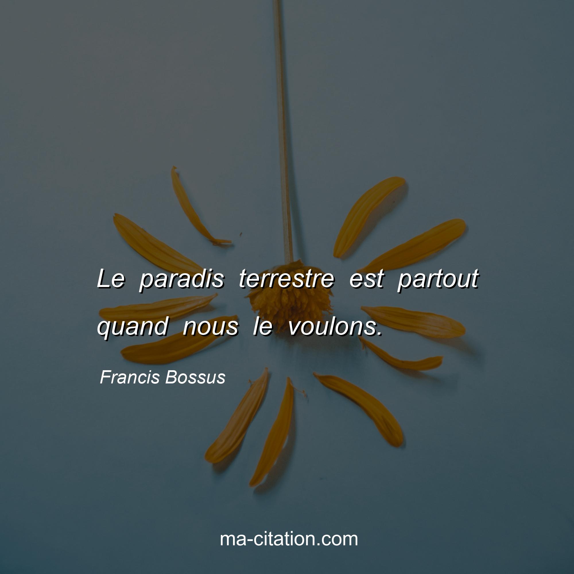 Francis Bossus est l'auteur de la citation sur la vie "Le paradis terrestre est partout quand nous le voulons.".