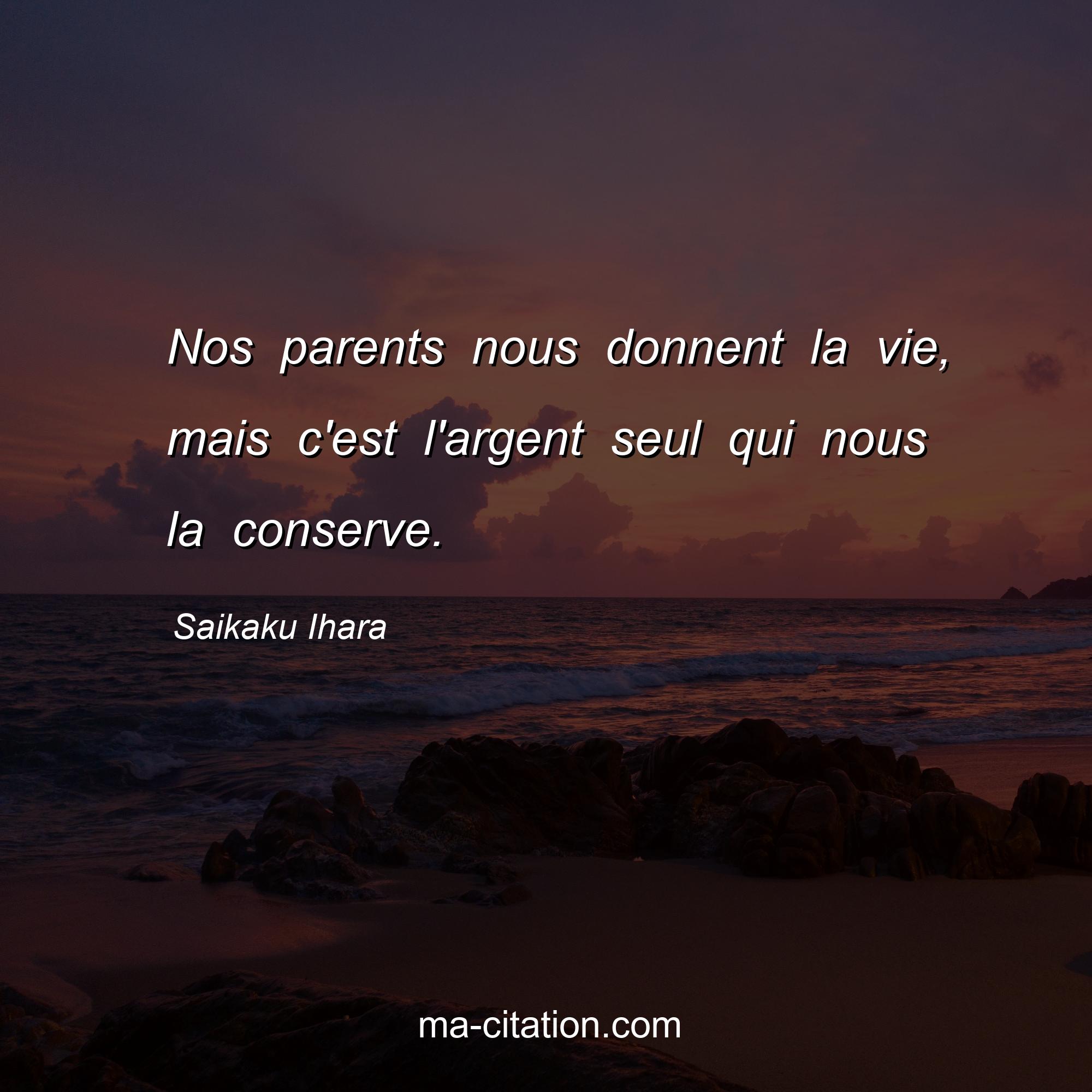 Saikaku Ihara est l'auteur de la citation sur la vie "Nos parents nous donnent la vie, mais c'est l'argent seul qui nous la conserve.".