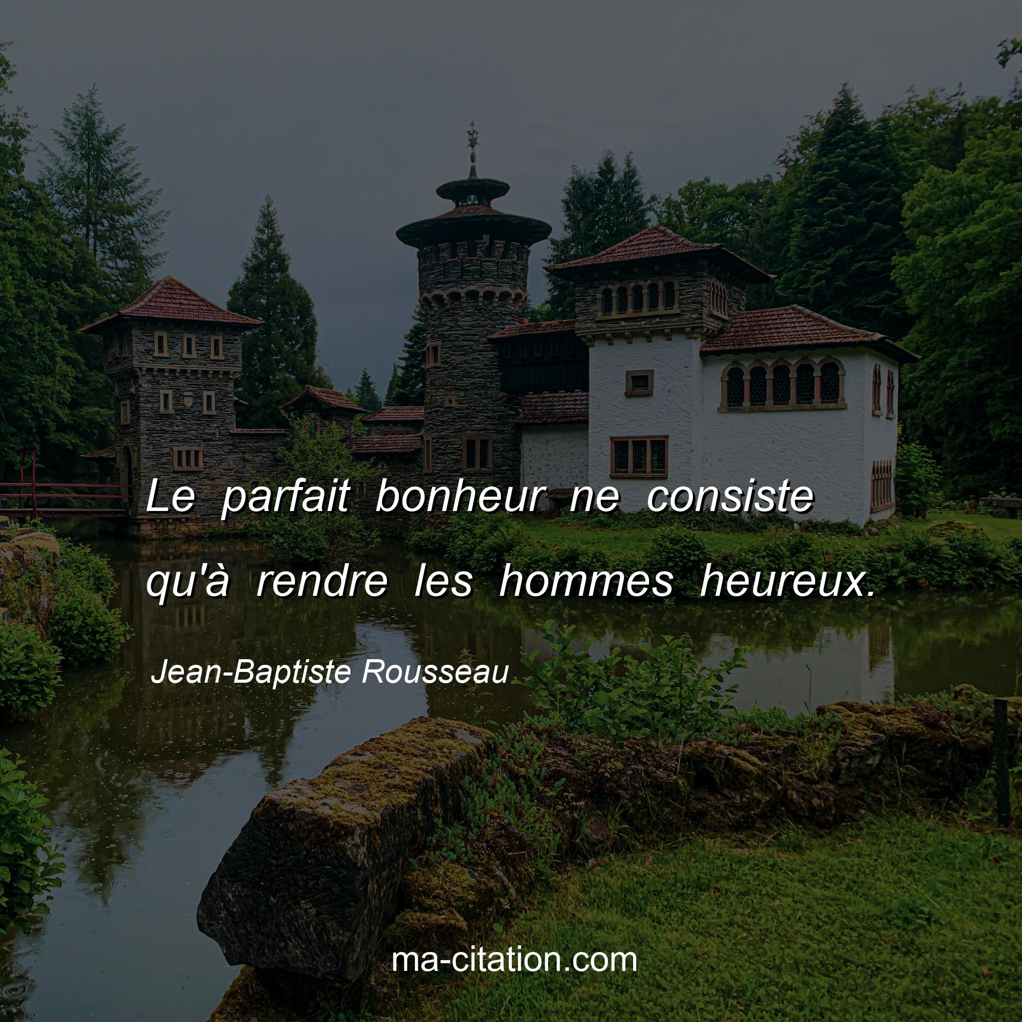 Citation sur la vie de Jean-Baptiste Rousseau :Le parfait bonheur ne consiste qu'Ã rendre les hommes heureux.