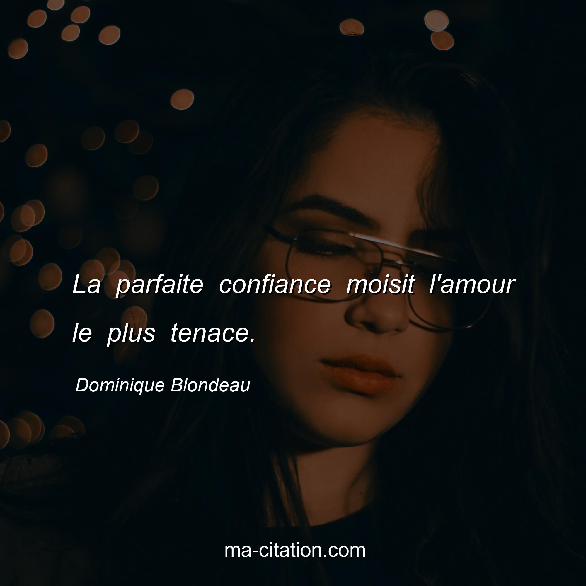 Dominique Blondeau est l'auteur de la citation sur la vie "La parfaite confiance moisit l'amour le plus tenace.".