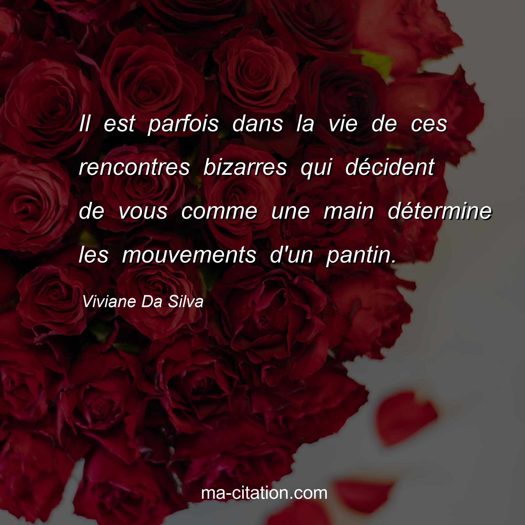 Citation sur la vie de Viviane Da Silva :Il est parfois dans la vie de ces rencontres bizarres qui décident de vous comme une main détermine les mouvements d'un pantin.