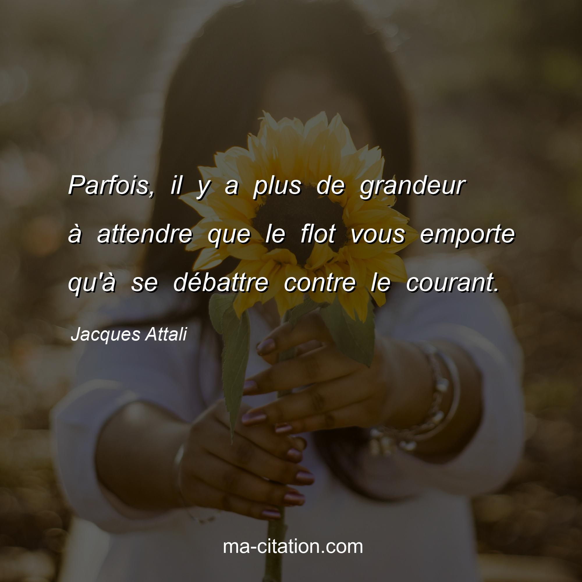 Jacques Attali est l'auteur de la citation sur la vie "Parfois, il y a plus de grandeur à attendre que le flot vous emporte qu'à se débattre contre le courant.".